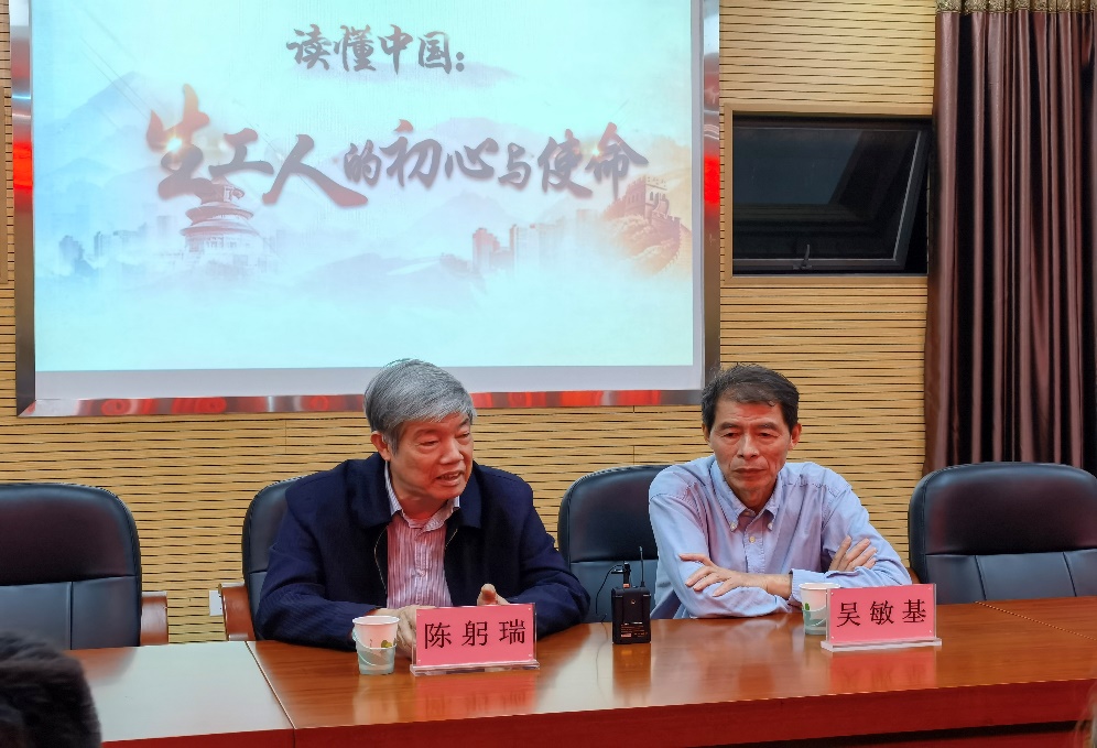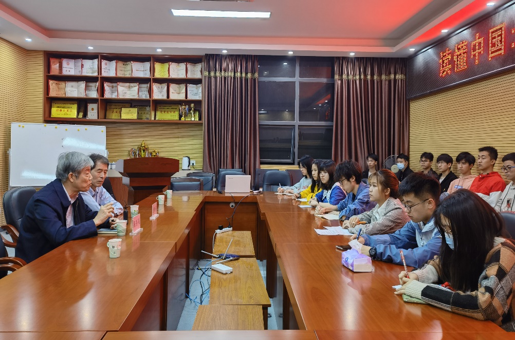 退休老教师陈躬瑞老师及吴敏基老师担任主讲嘉宾,院党委曹仁秋副书记、院团委书记周越及学院入党积极分子学生代表参加了此次专题座谈会。