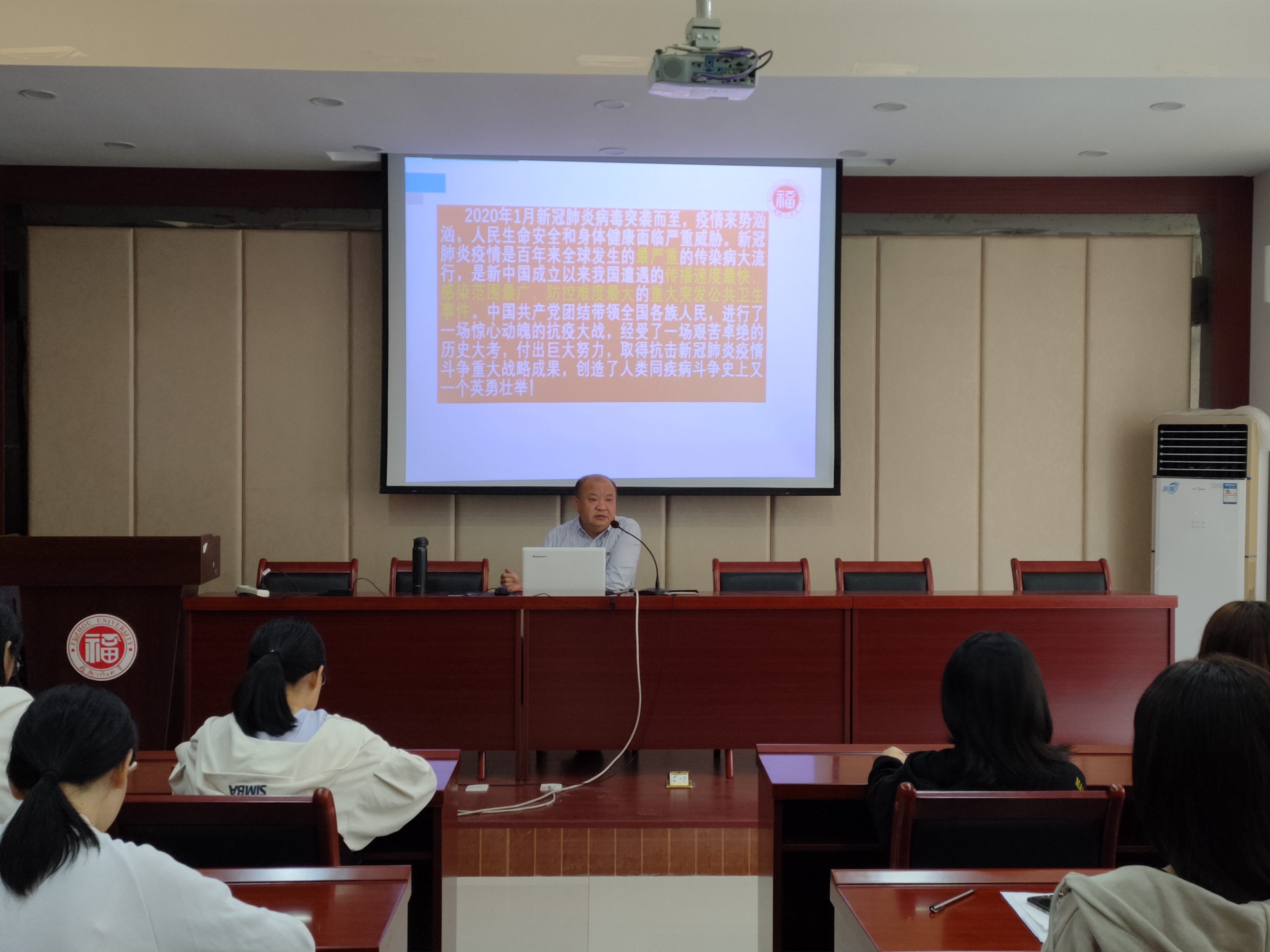 曹仁秋副书记从目前世界和中国新冠肺炎疫情的数据对比,阐述了生命至上、举国同心、舍生忘死、尊重科学、命运与共的伟大抗疫精神,他结合丰富的图表和数据,总结了中国抗疫斗争取得重大战略成果给世人展现了中国特色社会主义制度优势、中国人民和中华民族的伟力、中华文明的深厚底蕴和中国负责任大国的自觉担当。随后,讲述了抗疫斗争伟大实践的“六点启示”。