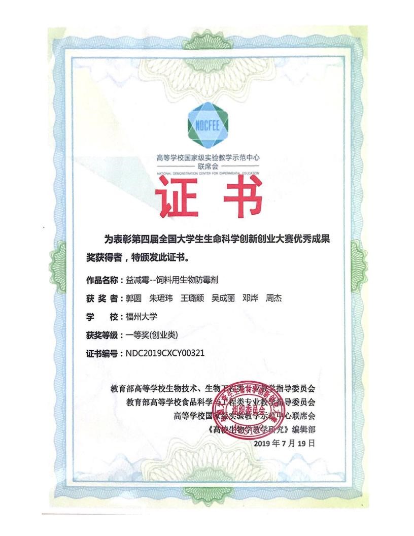 学生获第四届全国大学生生命科学创新创业大赛一等奖