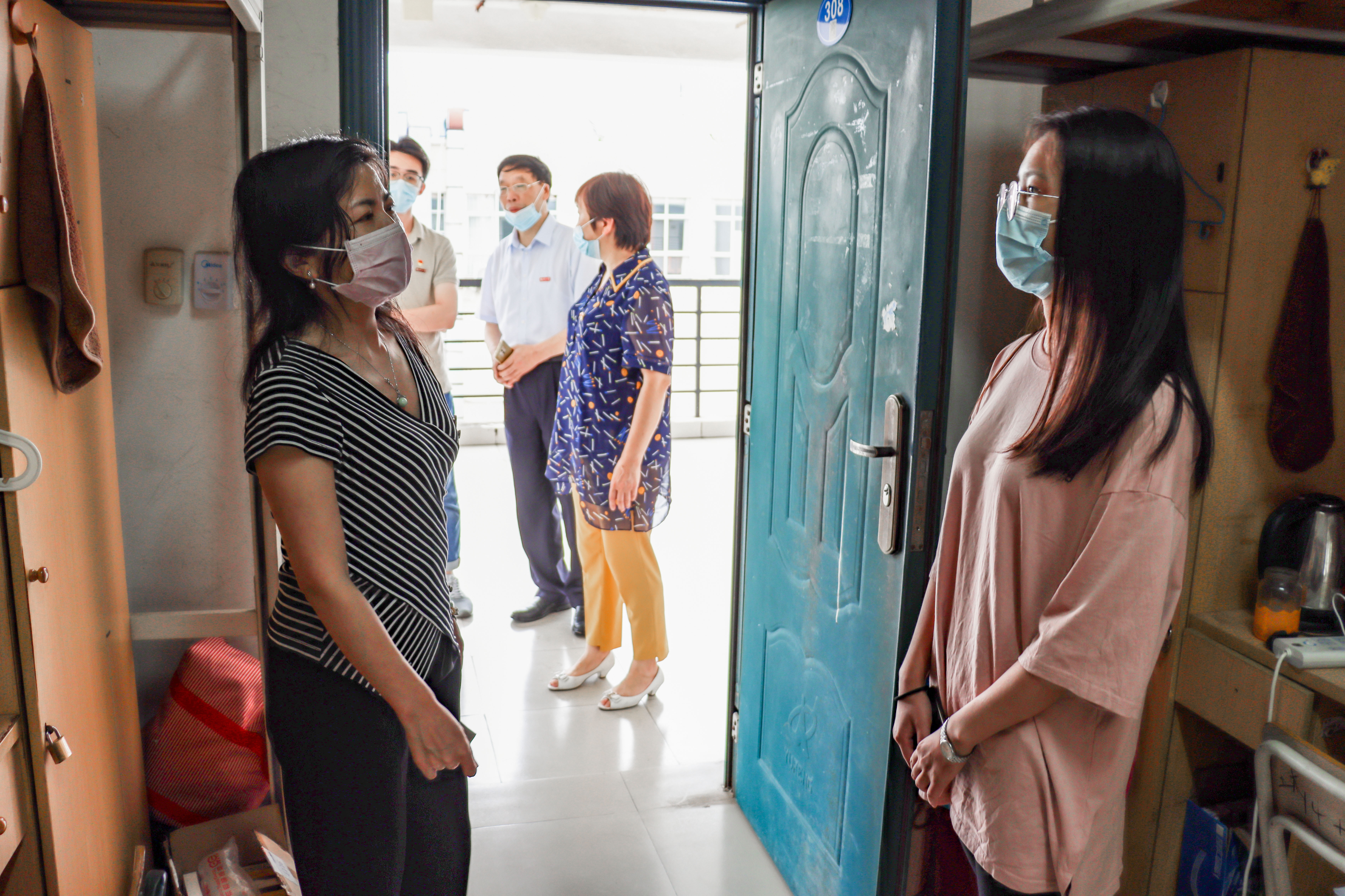 6月1日,学院党委王秀萍书记、汪少芸院长、学院党委郑延平副书记、团委书记周越以及毕业生辅导员廖加炜一同走访返校学生宿舍,亲切慰问时隔多日后回到宿舍的学生,并为他们送上爱爱视频
