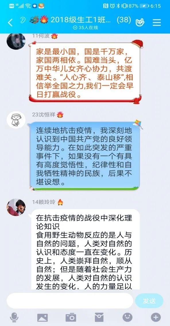 充分利用线上平台下达通知,组织同学们积极观看本次“思政大课”。同学们也积极地在家收看课程直播,并对直播内容进行学习、记录以及讨论。