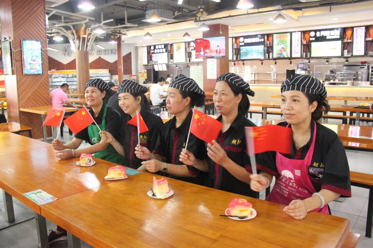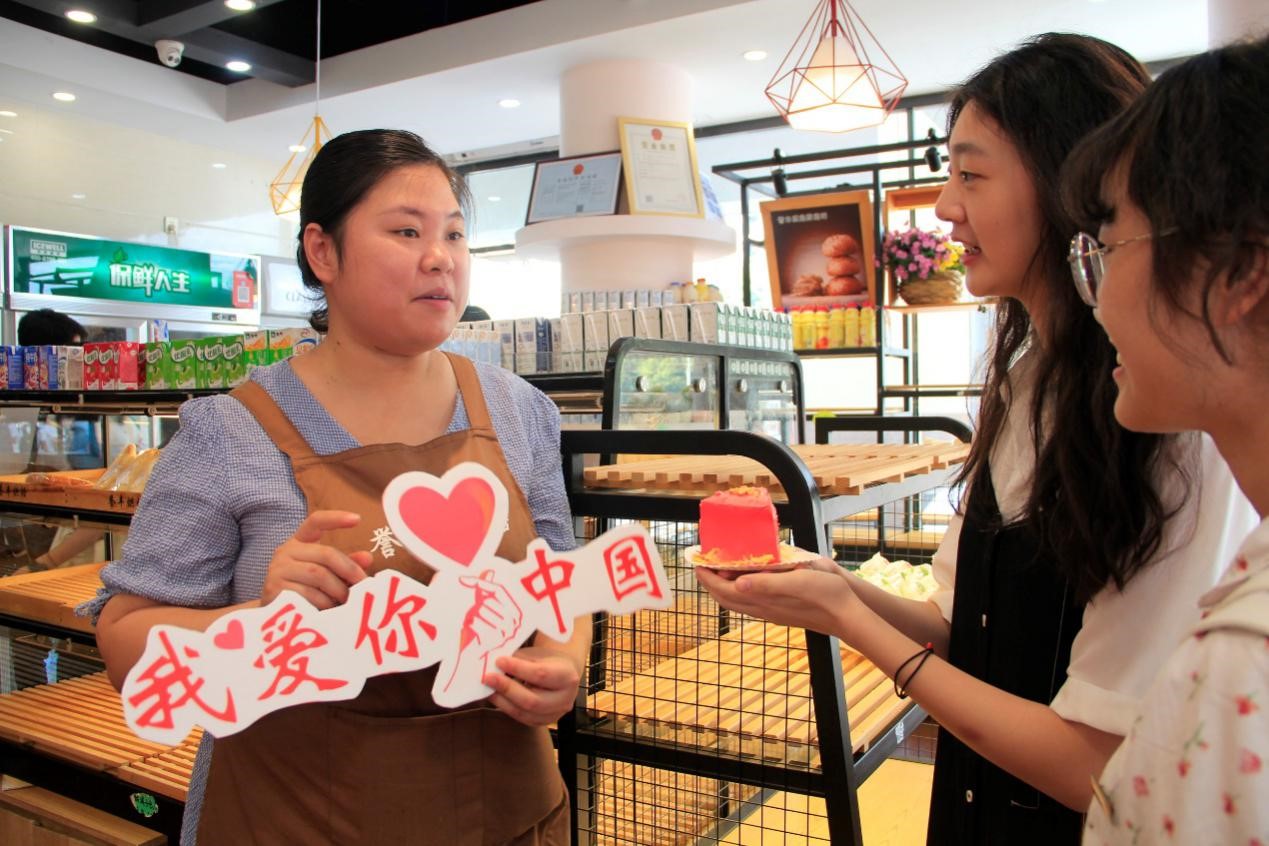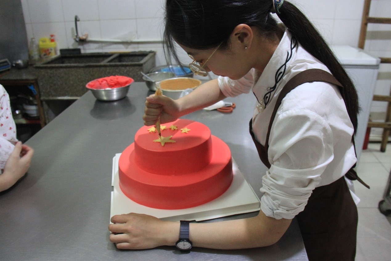 学子们利用学科专业知识与特长,亲手烘焙制作了一个国庆主题蛋糕。