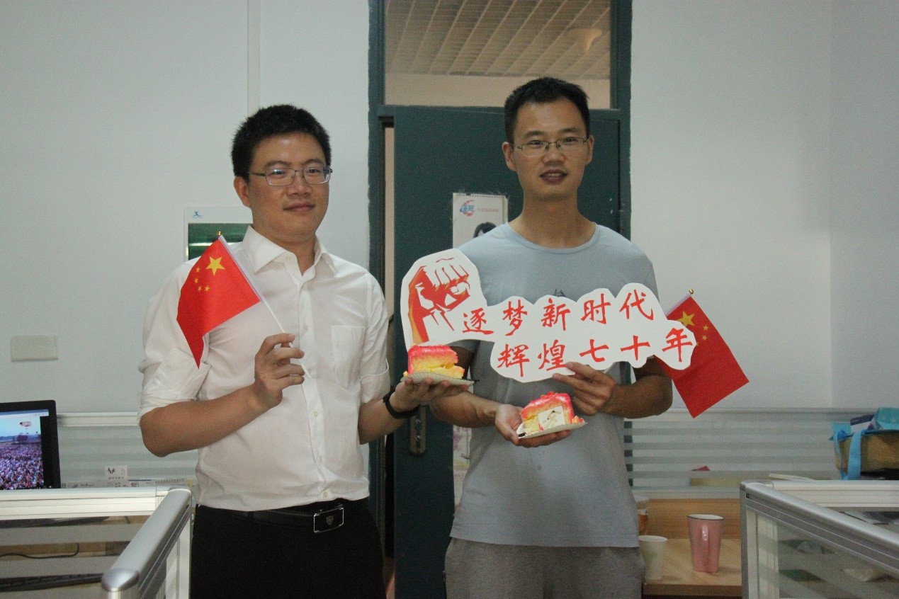 青春广场上,生工学子拉起了"盛世华诞,吾辈自强"的横幅,并在横幅上自豪的写下了对祖国最真挚的祝福,希望我们的中国永远繁荣昌盛。同学们也精心的为学校的老师、楼管阿姨、食堂阿姨、保安叔叔等送上国庆主题蛋糕,邀请他们一起说出对祖国真挚的祝福,为新中国成立70周年送上祝福,向他们的辛勤与坚持致敬。