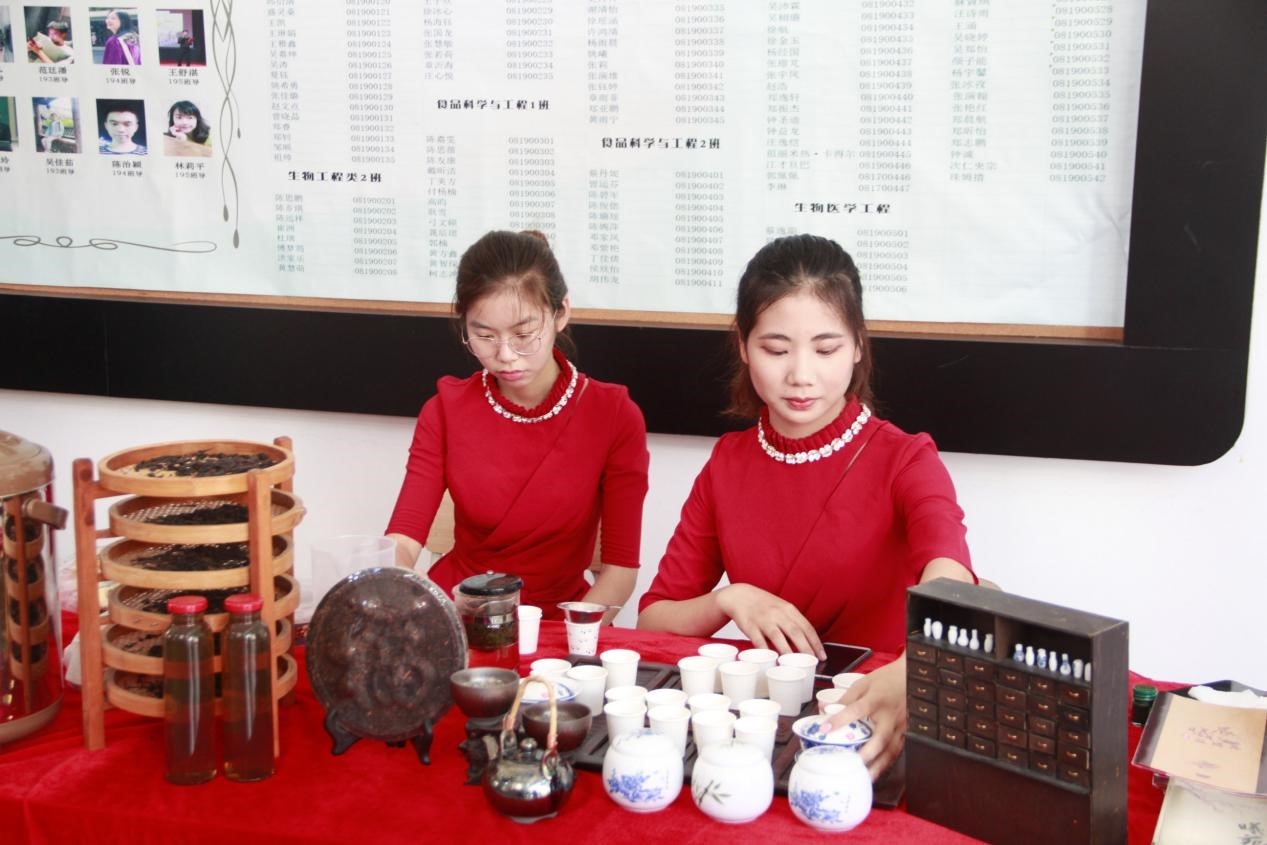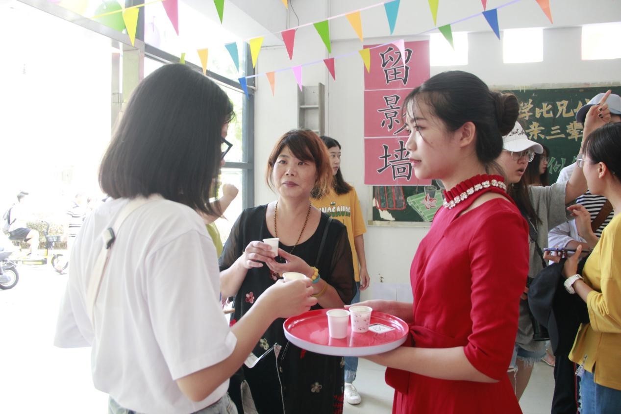“一杯清茶洗风尘,一句感恩献父母”学院特地准备的敬茶礼的环节。