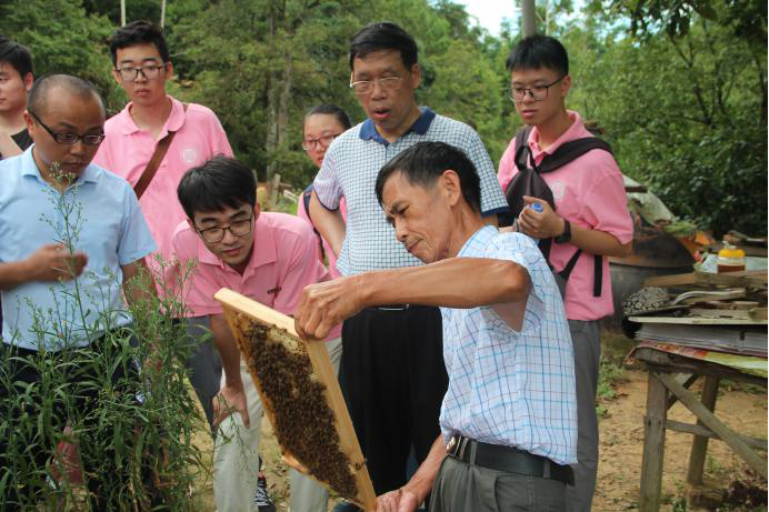 实践队依托学科专业知识开展科技支农活动,在实践过程中,队员们不仅与蜜蜂零距离接触,还体验了蜂农摇蜜的过程。通过与岭下店村村长、当地蜂农以及永泰县农业局相关工作人员的交流,了解了永泰县养蜂现状。与此同时,实践队员们还了解到农户养蜂时所遇到的问题,并和专业老师一起,利用专业知识对其进行初步解答。
