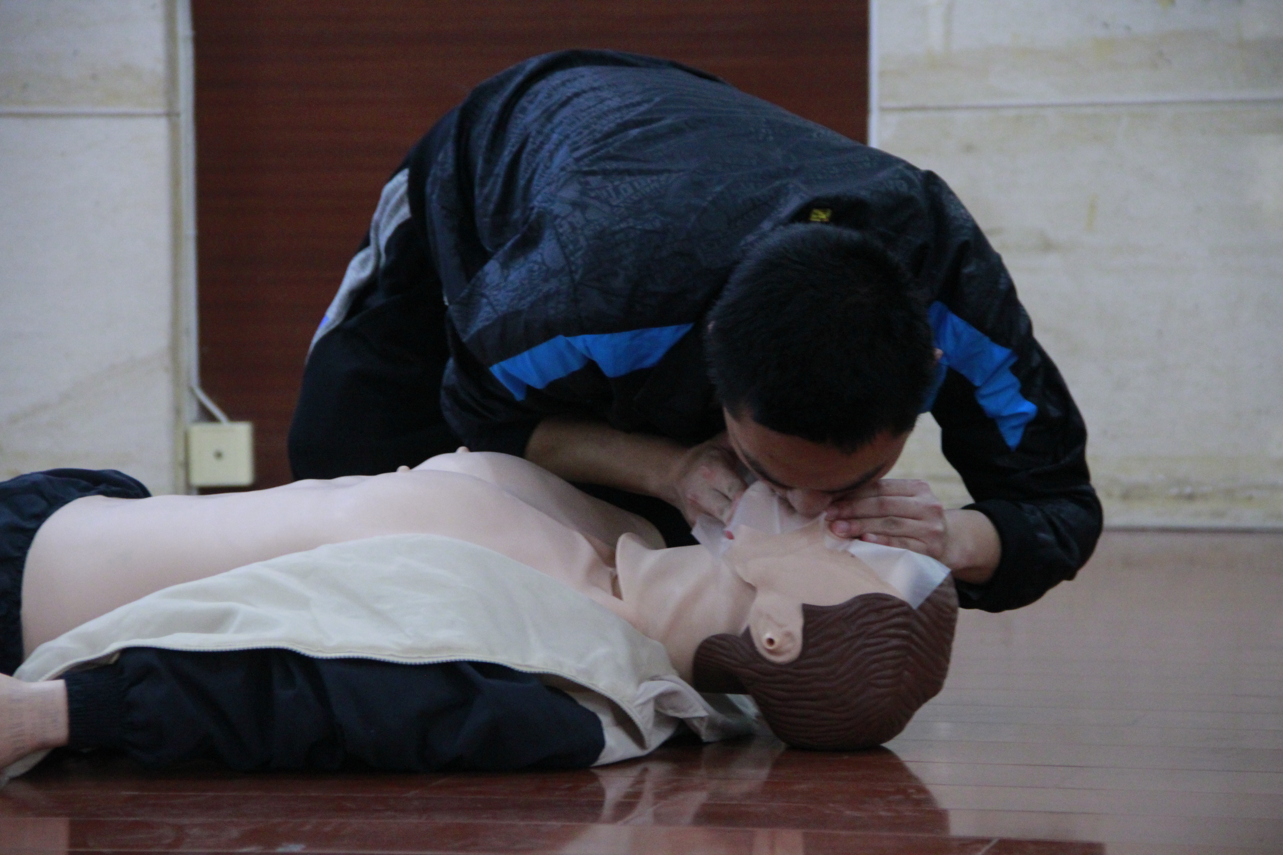 比赛分为两部分,绷带包扎结绳环节和心肺复苏环节。每个学院根据不同的情景设置进行急救演练,爱爱视频