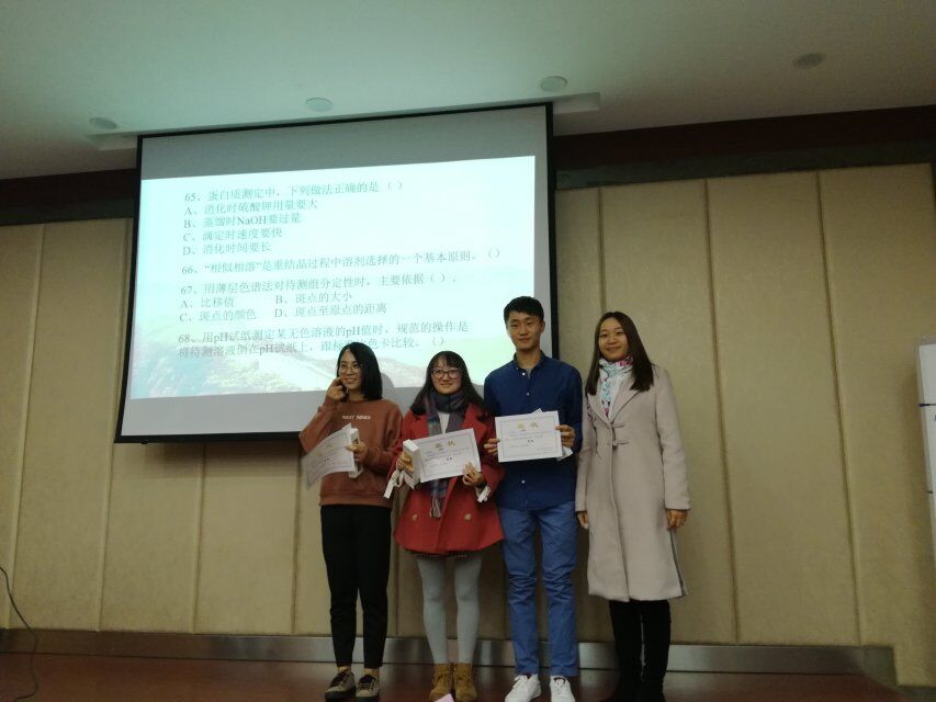 比赛分为淘汰赛和争夺赛两个阶段。最后一轮速答题中来自茶文化与健康研究所的队伍应答如流,反超前面队伍,获得比赛的一等奖,来自药物生物技术与工程研究所的队伍获得二等奖,来自抗体研发与肿瘤诊断实验室的队伍获得三等奖。
