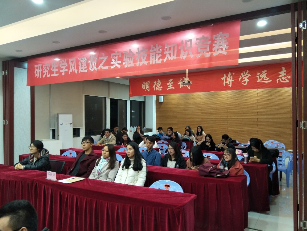 首届研究生实验室知识技能竞赛在生工北楼柏物产厅顺利进行。莅临此次知识竞赛的领导老师有学院党委副书记郑延平老师和辅导员郑丽婷老师。此次知识竞赛的目的在于配合学院学风建设,提高研究生的团队意识和夯实实验技能知识,增强学生的专业素养,为以后实验、工作打下基础,共14支队伍参与了此次比赛。
