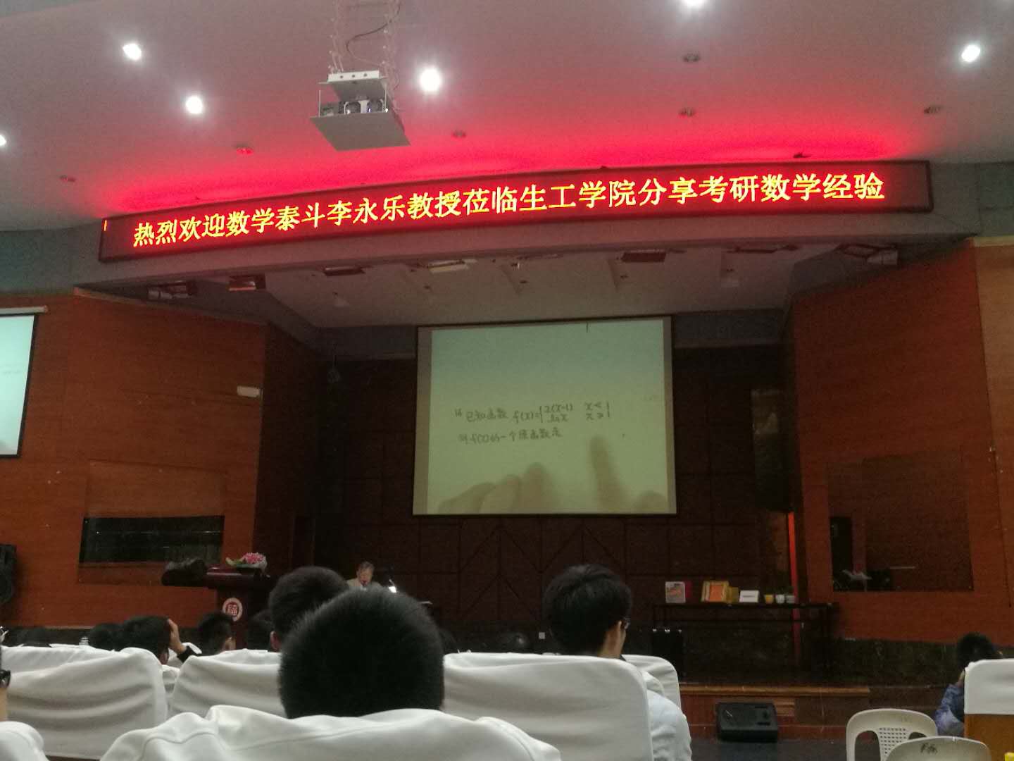 李永乐教授在讲座的开始便指出,考研数学的复习主要分三大阶段:五月份之前主攻课本和习题,五月到九月参考复习资料,十月到十二月专练真题模拟。此外,李永乐教授认为,考研数学的复习应该注重于基础和计算能力的提高,要多听课、多做题,更要坚持到底,同时更应该保持好平和的心态。讲座过程中,李永乐教授还为现场同学做了专门的题型分析,根据各题型的实际考察情况给出具体例题和详细解析。他告诉大家,选择题的重点考察方向在于基本概念和方法,填空题偏向于对于基础知识的识记和理解以及准确的运算,而解答题则注重学生各方面能力和掌握并熟练运用知识的程度,讲究综合性。在场的同学们都十分专注认真。在讲座的最后,和蔼的李永乐教授悉心为现场同学解答了考研数学的冲刺复习准备、考试心态调整等方面的问题,到此分享会落下了圆满的帷幕。