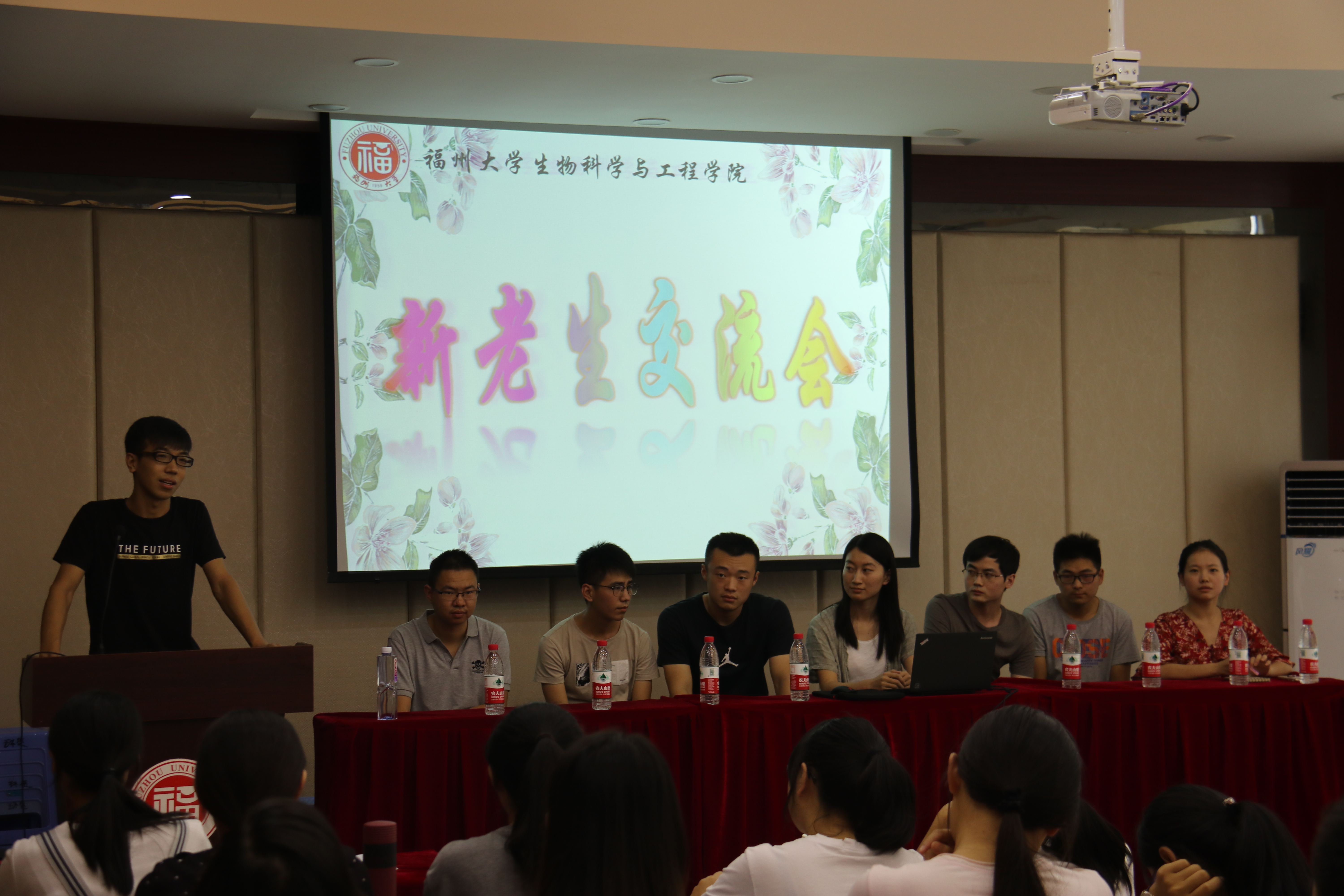 在生工北楼柏物产报告厅开展2017级新老生交流会活动,参加活动的有17级研究生辅导员郑丽婷、各研究所高年级研究生代表以及全体17级研究生。