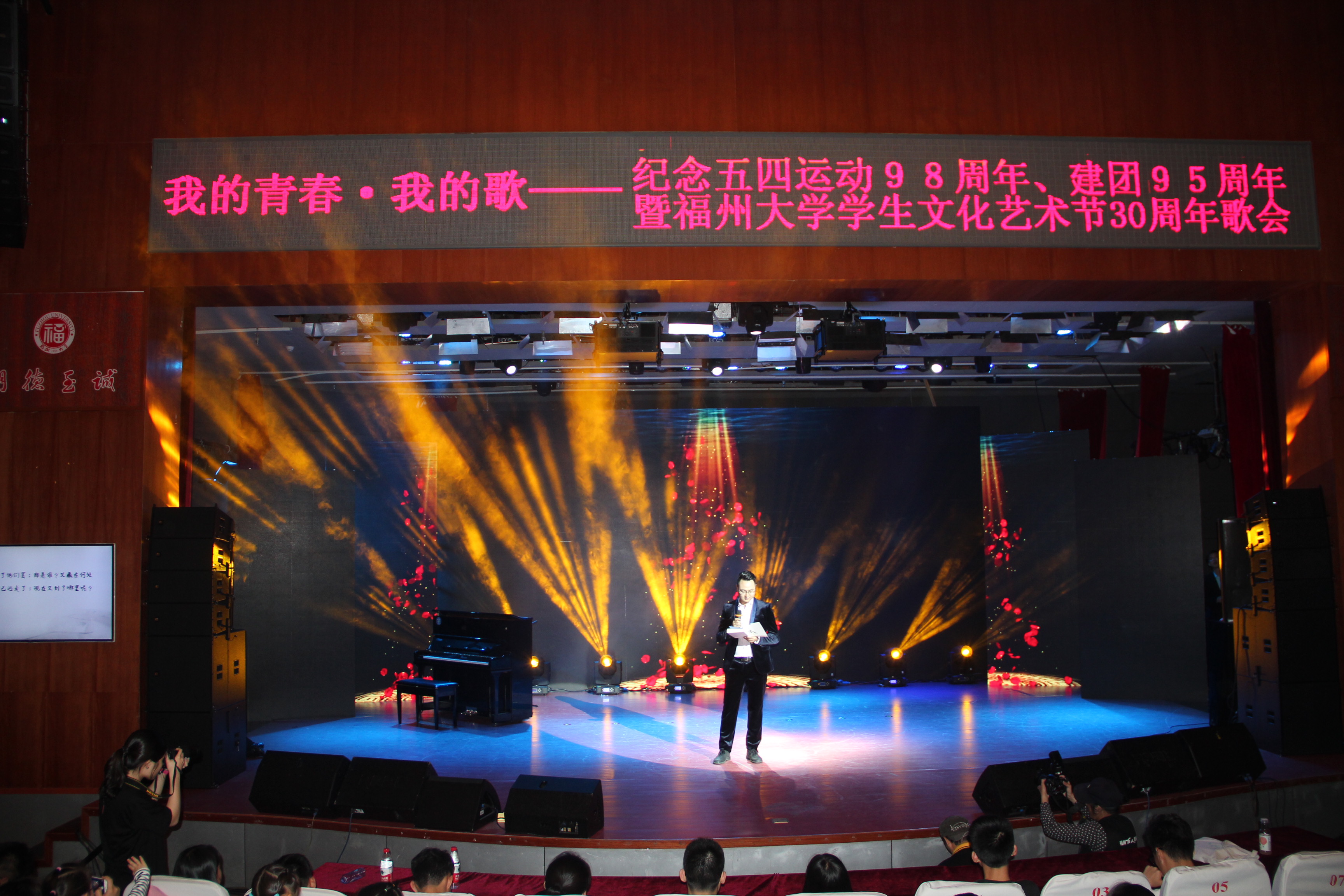节目的最后便是今晚的表演者与校领导的合照,至此,本次的歌会便落下了圆满的帷幕。出席此次歌会的演唱者都是福大校友,在五四这个特殊的日子里,他们又相聚在了大学母校,他们风华正茂的地方,用自己的嗓音纪念那段美好的回忆。