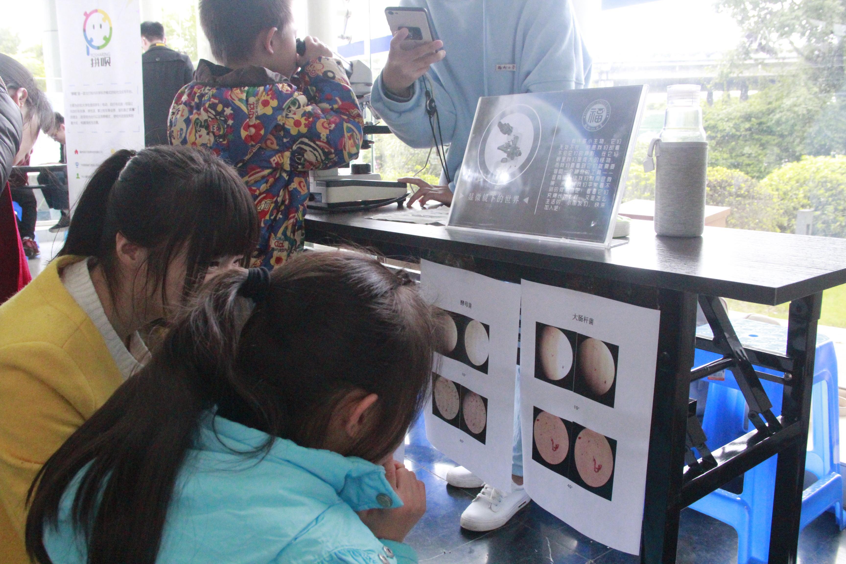 热情的工作人员耐心地教导小朋友们使用显微镜观察细菌,带孩子们走进显微镜下的微世界。并且,工作人员还对几种细菌做了简单的讲解介绍。