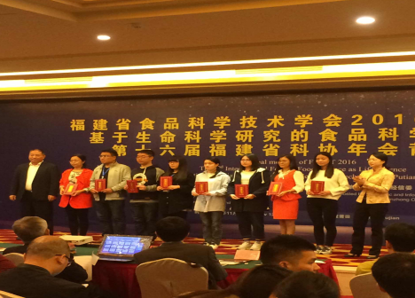 2016年11月12日,福建省食品科学技术学会、“基于生物学研究的食品科学”高峰论坛及第十六届福建省科协年会在莆田三正半山酒店隆重召开。本次会议聚集了来自福建高校科研院所、企业界和区县科协等200余位代表参会。本次会议内容丰富,包括大会主题报告、颁奖仪式、莆田食品产业发展交流会、企业参访等