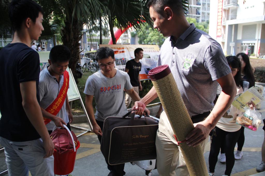 党委书记王群,院长杨黄浩,副书记郑延平,团委书记周越以及新生辅导员廖加炜到迎新点指导工作,并向新生家长问好。就本届新生来看,一如既往的是省内新生较省外多,一人入学全家陪同的现象比较普遍,不同的是多数新生和家长对学校、学院和专业也有一定的了解,新生也有自己的学习计划和生活目标。志愿者由团委部门和学生会部门以及15级学生组成,多班轮值全身心投入迎新工作。当天天气较为炎热,但仍然有许多学生自愿加入到迎接新生的志愿者队伍中,他们带着饱满的热情,无视额头的汗水,带着亲切的微笑迎接新生。