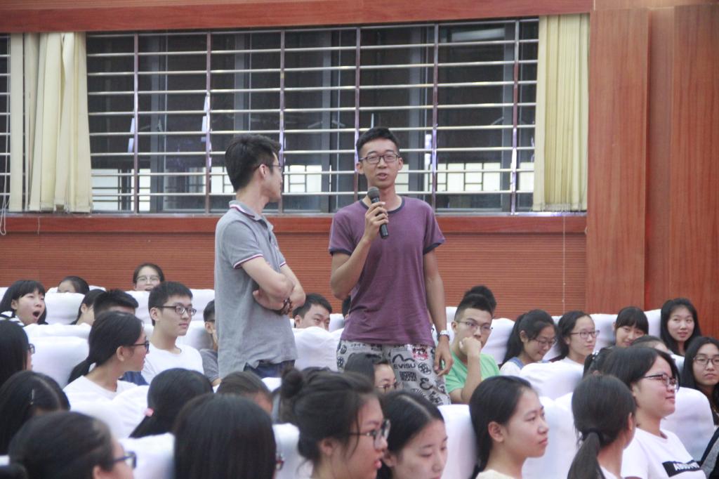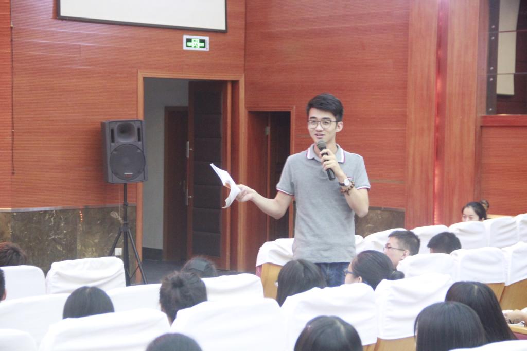 首先,廖加炜老师进行自己介绍,并介绍各班班导,同时,希望新生们做个有担当的年轻人培养独立的人格,强调礼貌问题。他希望新生们能适应大学,学会自己解决自身问题,之后,他以辅导员的角度向新生阐述了安全问题,并强调若安全无保障,其它就没有意义。就学生工作方面,他说:“大学的成绩不只是学习成绩”鼓励新生锻炼自己的能力,保持热情,专心做好一两件事,有自己的成长和收获。整个讲座中,他对“大学适应”“宿舍问题”“考纪考风”“纪律管理”“科技创新”“防盗防骗”等话题做了详细讲解,以身为例,以生为例,语言幽默诙谐,现场多次响起掌声与笑声。最后,廖加炜老师与新生进行互动,谈论“大学第一天的感觉”,同学们积极发言。