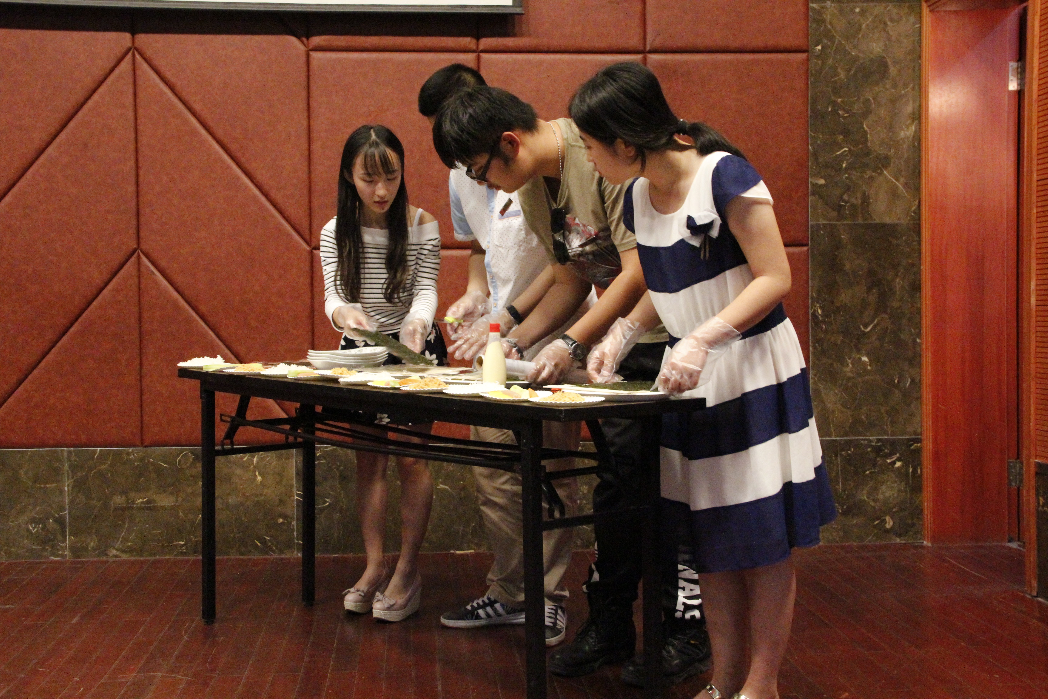 带来了自己填词并演唱的闽菜主题歌曲和“川越鸿门”小品,伴以生动有趣的寿司制作及“香料猜猜猜”互动环节。最后,在福建中医药大学针灸学院表演的“医食无忧”湘菜宴会和福建师范大学文学院带来的“食在广东”节目中落下了帷幕。