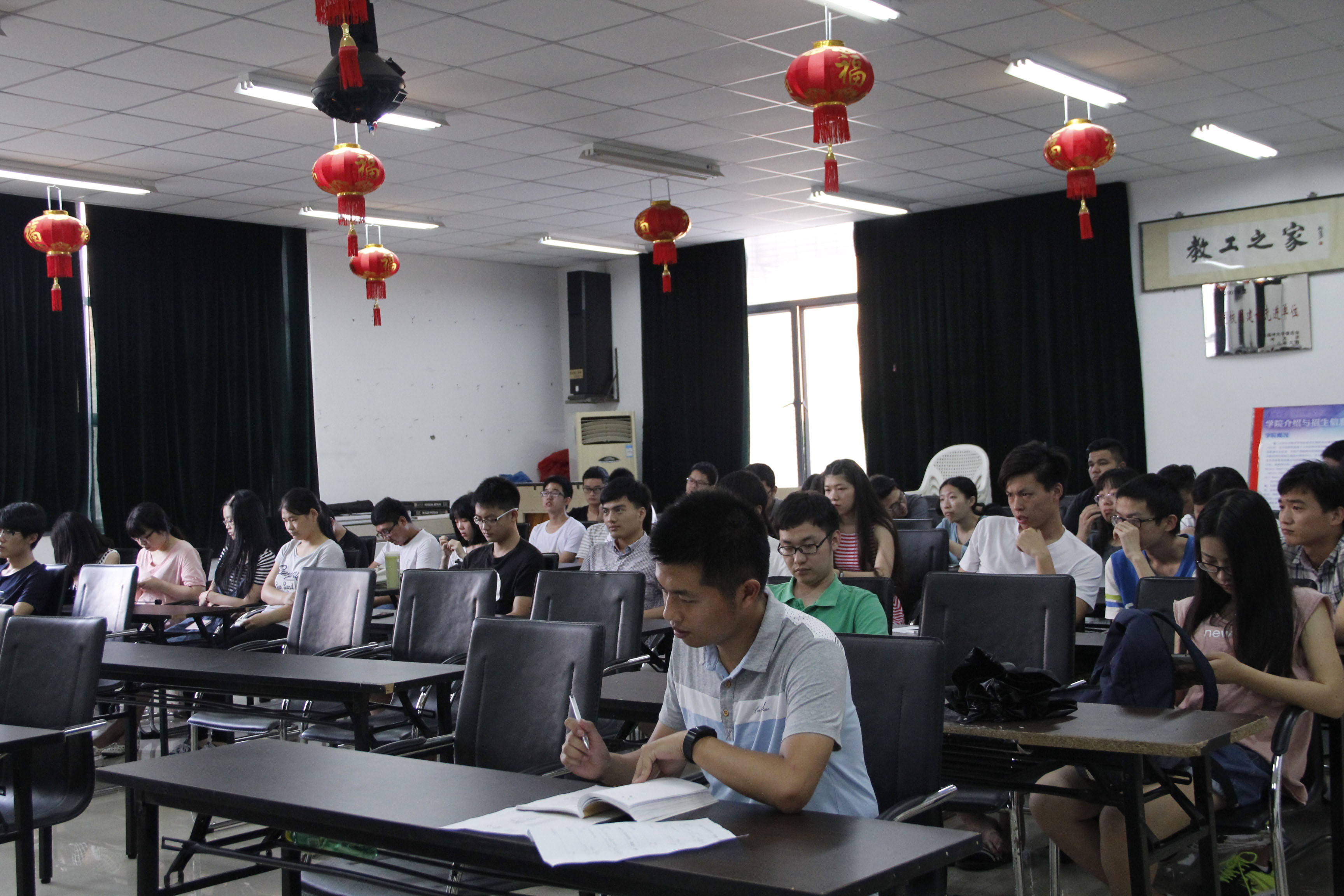 会上,郑延平副书记从考研院校、专业选择、考外或考内、院校和专业确定后续工作等方面,对2017届考研情况作了详细介绍。在考研院校的选择方面,郑副书记表示同学们应结合自身的专业、兴趣、对地域的要求、学校的师资配置等综合考虑进行选择。并举了一些贴合实际的考研生的例子,让大家更加透彻的了解考研。之后他提出,对于家庭条件比较困难但是又想考研的同学,学院会酌情考虑给予资金的帮助,希望暑假能专心的复习,为考研做准备。期间林婧烨老师对内容进行了一些补充。最后,由黄鹏辉老师总结,然后提出学习小组这个计划。