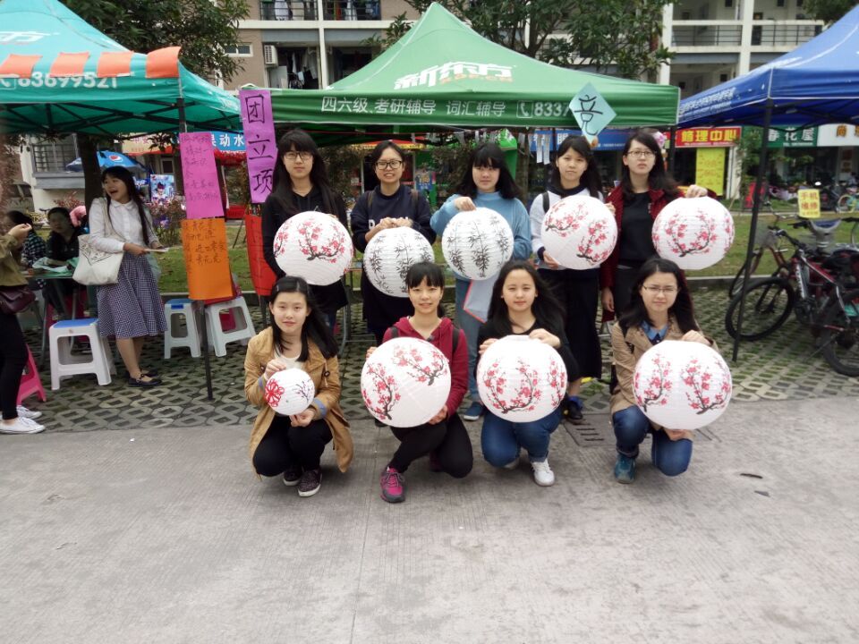 写着灯谜的小纸条用红绳悬挂于帐篷之间,每张纸条上的灯谜都涵盖不同的内容,或诸子百家,或民俗风情,或传统节日,或一个汉字。参与活动的人员每猜对两个谜语便有一次抽奖的机会,而奖品亦是我们精心准备的古色古香的小物件,例如青花瓷书签、折扇等。