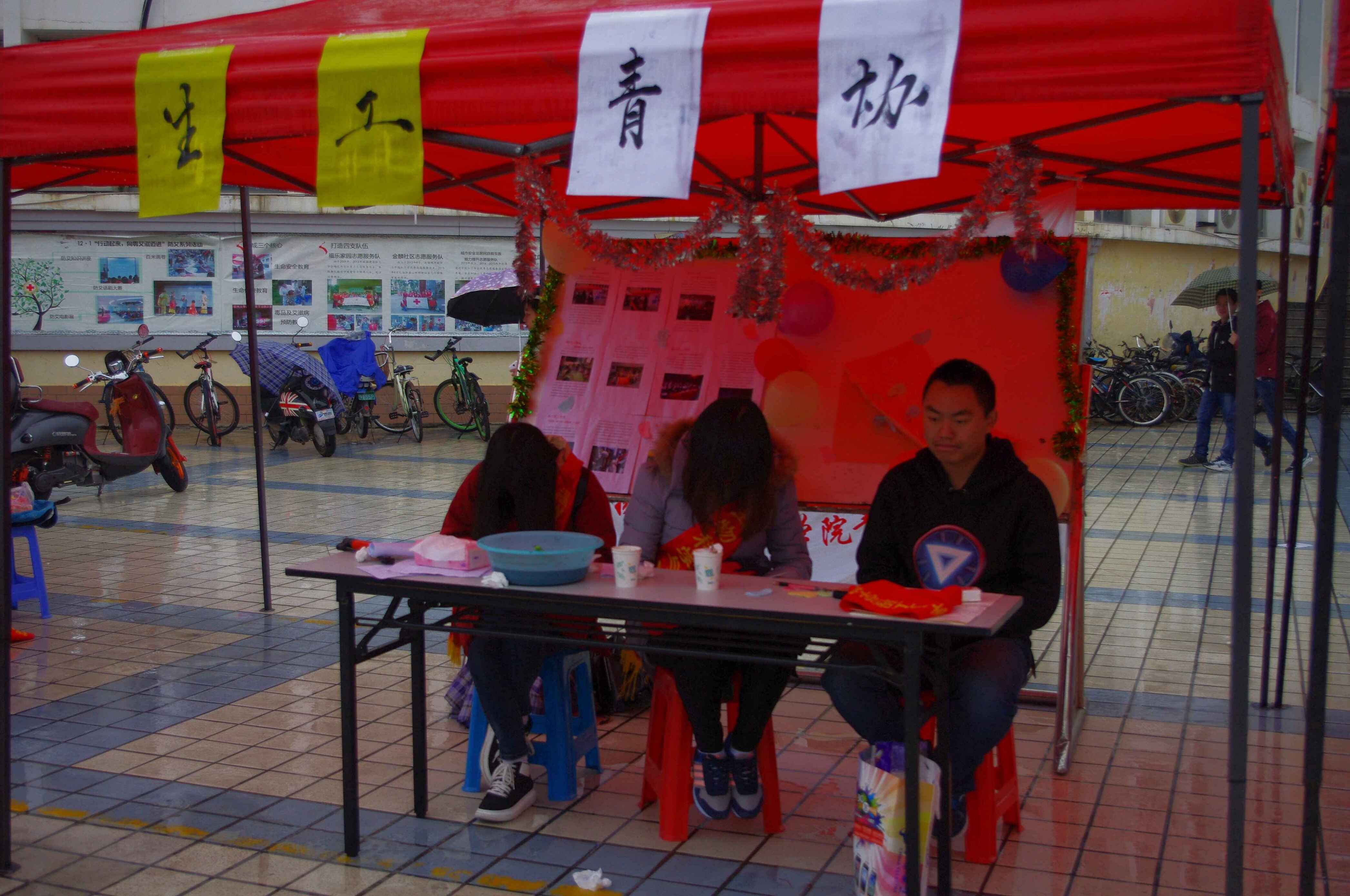 青年志愿者协会与各院青协于青春广场举行外场游戏活动。活动内容包括志愿者答题与夹珠子游戏。题目从各个方面考察大家对志愿活动的了解。参与者达到取胜标准后即可获指纹爱心卡一张,凭指纹爱心卡参加校青协游戏,在心愿树下写下寄语,根据游戏成绩领取奖品。游戏过程中,爱爱视频