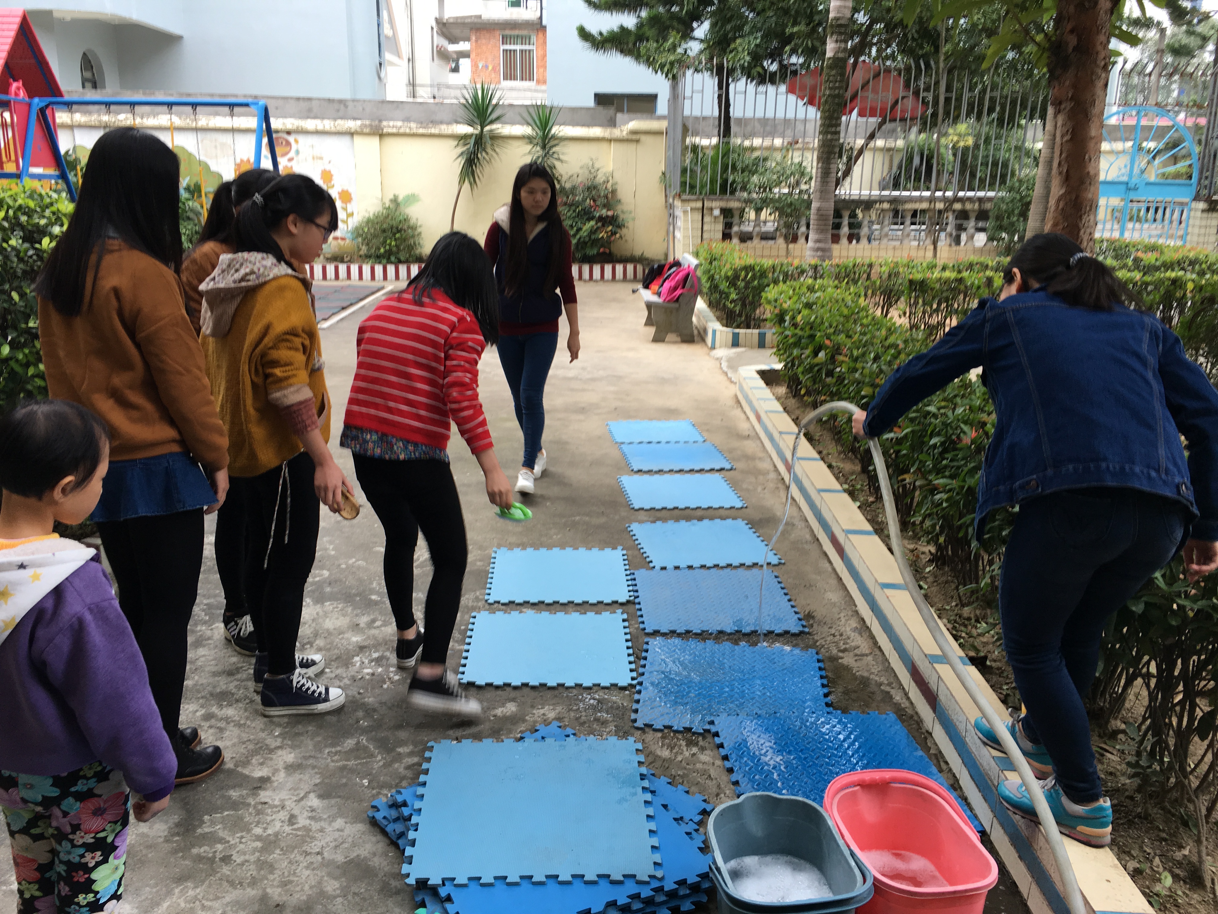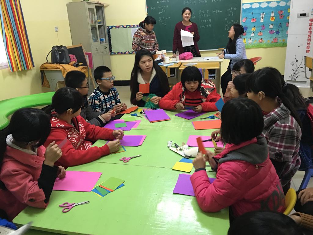 下午三点左右,生工志愿者到新希望康复中心,受到了康复中心老师的热情接待。老师与带队学生余安玲沟通,为学生安排了志愿任务。志愿者为康复中心进行大扫除。在志愿者的努力下,康复中心的踏板与栏杆在志愿者清理下一尘不染。在清洁卫生后,志愿者教康复中心的小朋友制作“彩带鱼”。在志愿者耐心地指导下,康复中心的小朋友制作出一只只色泽缤纷的“彩带鱼”。据老师介绍,手工课是小朋友最喜欢的课程之一,给小朋友带来许多快乐。活动在一条条“彩带鱼”的诞生中接近了尾声。结束后,志愿者与康复中心小朋友合影留念。