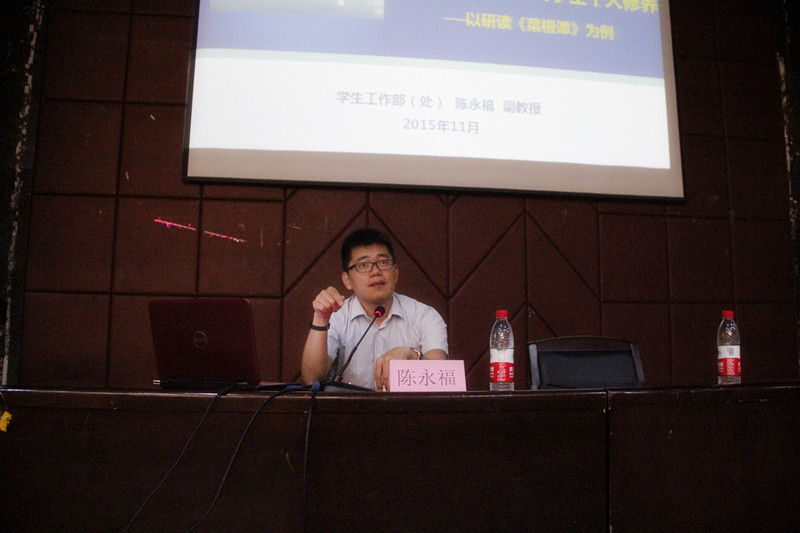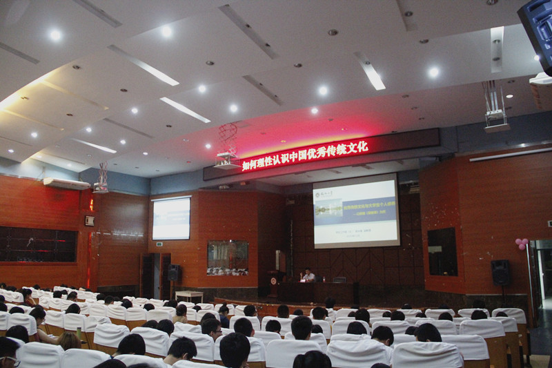 陈永福老师以“对孔融让梨的看法”与“选出最喜欢的三个节日”等问题的调查,阐述了大学生对传统文化认识的可取与不足之处。调查中发现春节,中秋,端午是大学生心中最喜爱的三个节日,表明他们心中是看重传统的节日,不足之处为他们扭曲了这些传统节日的真正意义。他谈到:知识不等于文化,文化与修养共存,强调了大学生的个人修养对自己人生的重要性。随后,陈老师对“中国传统文化面临的境遇”“中国传统文化发展脉络”“优秀传统文化与大学生个人修养”展开论述,倡导大学生应该吸收优秀传统文化,提升个人的文化修养,并表示,大学生应该学会怎样与他人,社会,尤其是与自己相处,且要加强自我意识,学会反思学会自省,最后,陈永福老师应用“菜根谭”的格言向同学们解释个人修养的内涵。