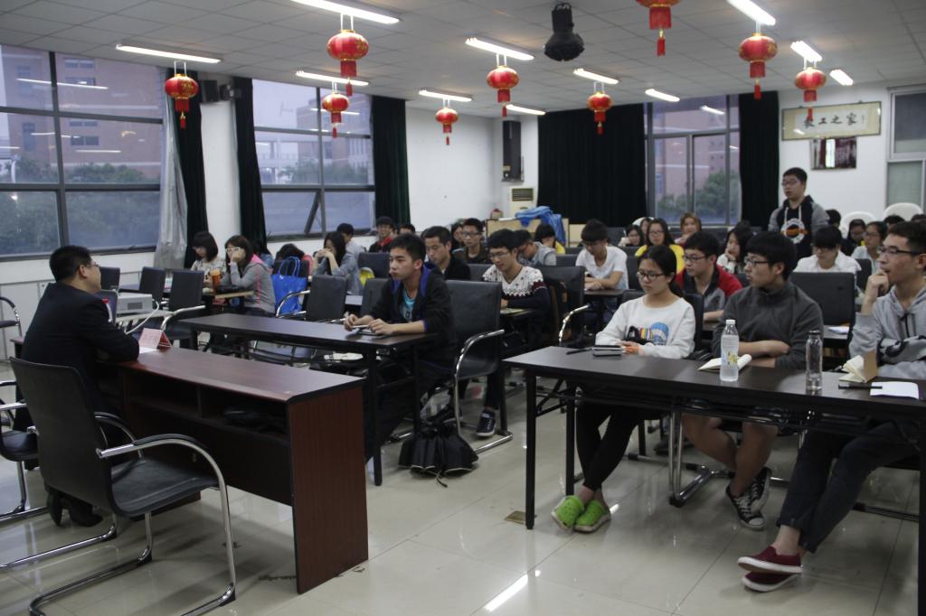 在课堂上,孙正伟老师重点从三方面详细阐述了大家应如何去做一名优秀的学生干部。首先他讲到大家要对学生干部有一个明确的定位,正确处理学习与工作上的关系。即要明确学习的重要性,切忌因为工作而耽误学习。随后,他通过向大家提问“大家是怎样理解学生干部的”,谈到作为一名学生干部,就要时刻具备帮助老师、带领同学、服务同学的意识;养成良好的思想政治素质、道德素质、心理素质以及各种能力素质,如活动的执行能力、协调能力、笔头能力等等。最后,他强调学生干部要多走进同学,深入了解同学们的生活与学习状况,要努力做到四勤,即腿勤、手勤、嘴勤、脑勤。
