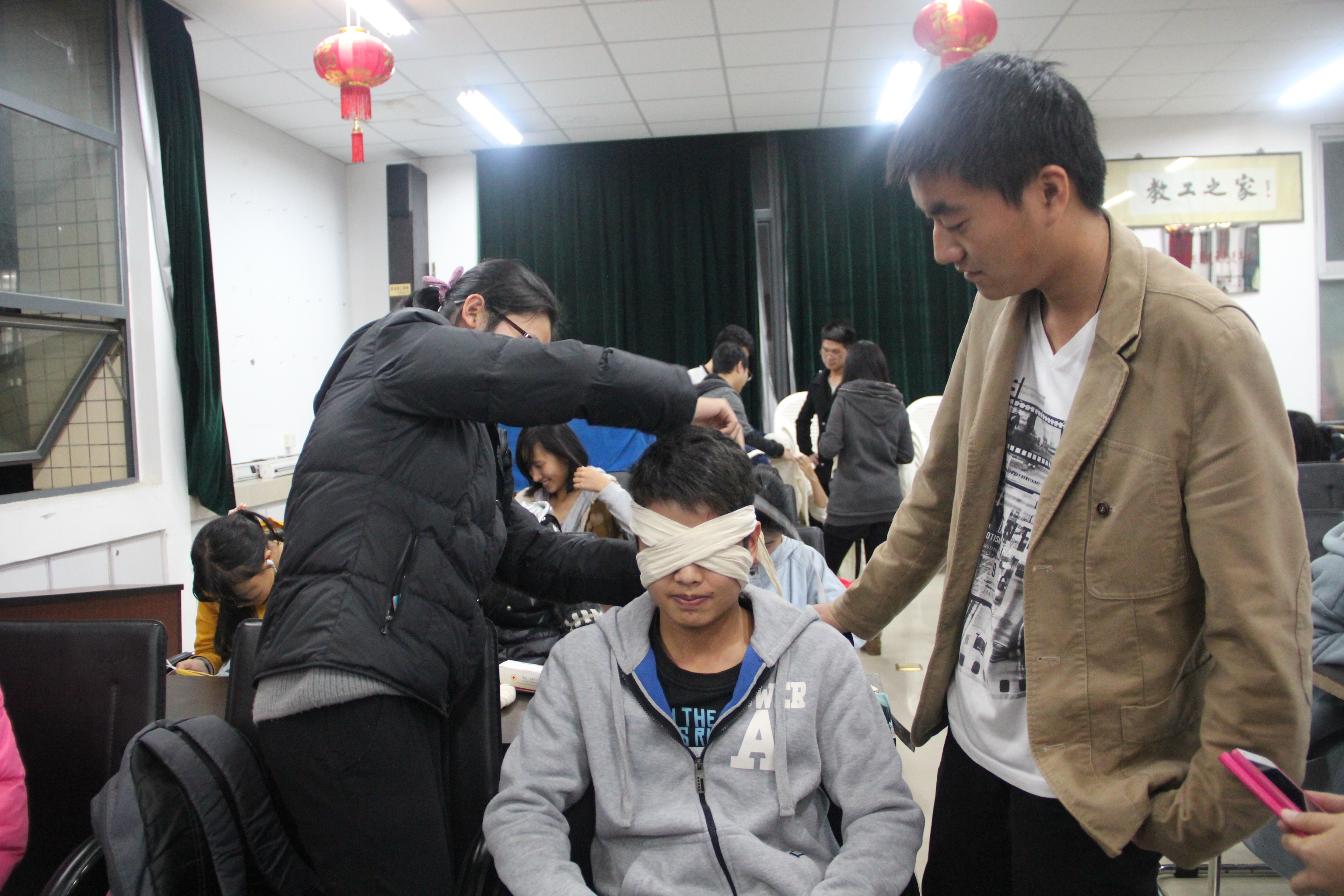 校红十字会培训部1部现场培训和指导。