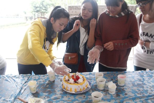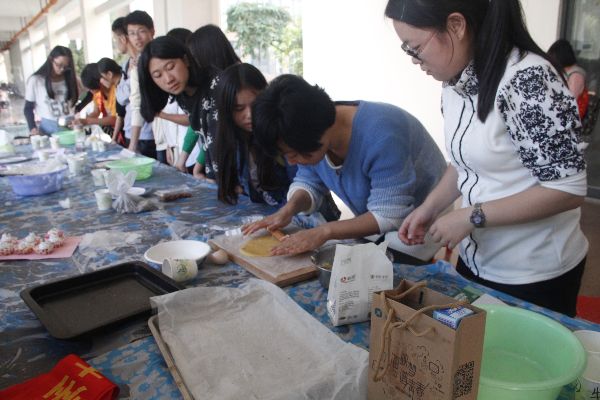 记者随即采访了一位制作蛋糕的同学,她笑盈盈地答道:“作为吃货,制作甜点的过程当然是非常开心的,吃到自己制作的蛋糕更能体会到粮食来之不易。”在享受美食的过程中,同学们更能体会到劳动的辛苦。