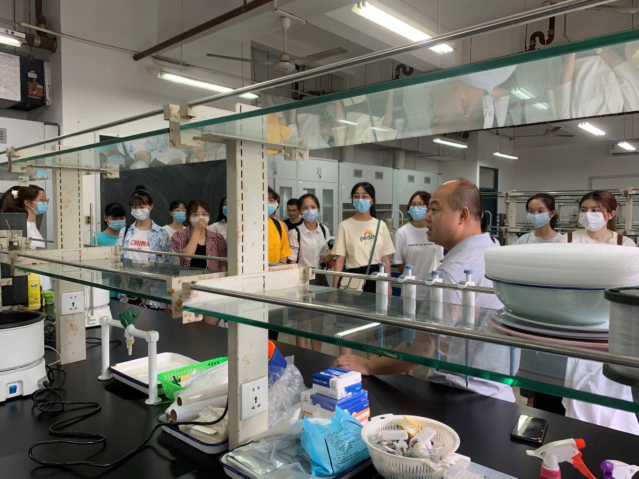 科研研究的各个方向,并结合相关专业知识形象生动地为同学们讲解科学研究中的专业技术。老师们风趣的讲解和实验室里精密的仪器吸引了同学们的注意,大家认真倾听,积极提问,参观全程充满着浓厚的学术氛围。