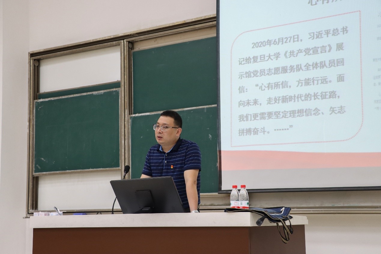 “心有所信,方能行远。面向未来,走好新时代的长征路,我们更需要坚定理想信念、矢志拼搏奋斗。” 在专题讲座上,赵鹏科长首先引用了习近平总书记给复旦大学《共产党宣言》展示馆党员志愿服务队全体队员回信内容,鼓励大家坚定理想信念,砥砺初心使命。