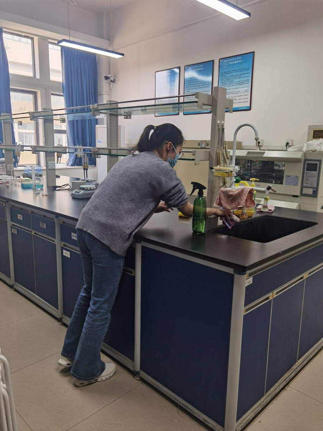 志愿者们热情满满走进实验室,清洗烧杯、玻璃棒等实验工具,打扫地板、擦拭实验台面,有序整理摆放各类实验器械。他们合理分工合作,认真参与卫生清扫,积极为同学们营造了良好的学习和实验环境。