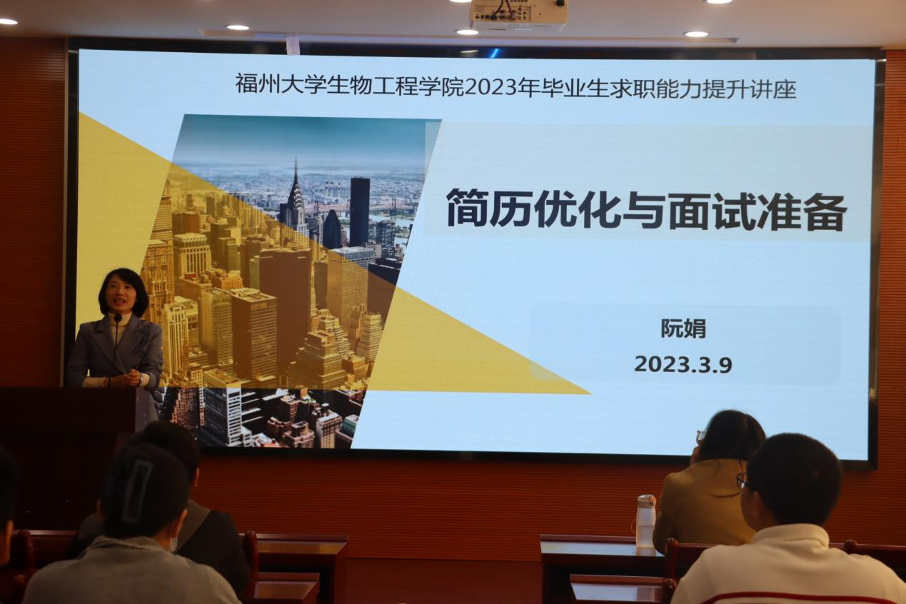 为迎接求职季到来,帮助学生更好地迈好走向社会的第一步,3月9日上午马克思主义学院的阮娟老师于生工北楼柏物产厅开展了《简历优化与面试准备》就业指导讲座。通过此次讲座同学们提高了自身竞争力,增强了升学或求职之路的信心。