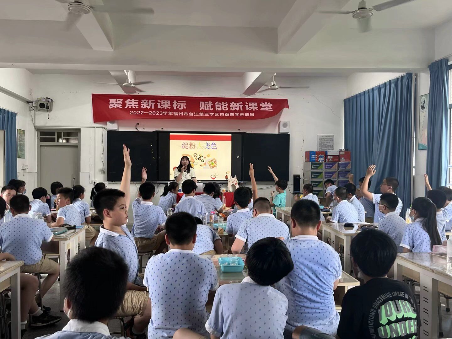 结合五年级科学课第一单元的内容“显微镜下的生命世界”和“微生物的功与过”,专硕党支部的朱纪炜同志通过有奖竞猜的方式,让同学们温故而知新,同学们踊跃举手,大胆发言,气氛活跃,随后进行了播放细菌科普视频和酵母菌的简介,让同学们进一步加深了对微生物的了解。王逞同志通过耐心细致地讲解,向同学们科普了淀粉的相关性质,阐述了淀粉在人体内的消化机制,同学们听得格外认真,纷纷参与到回答问题的互动环节发表自己的见解。