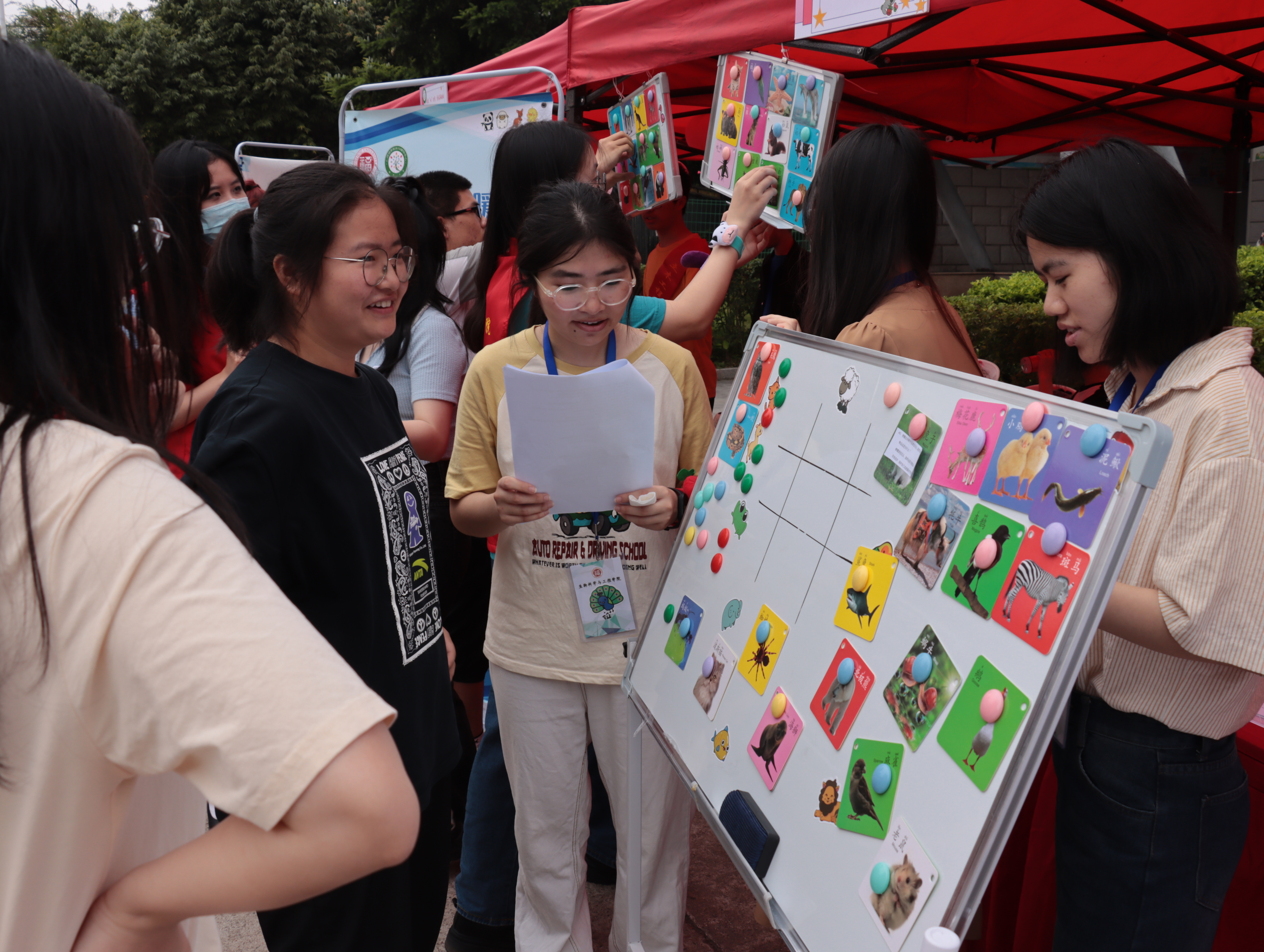活动现场分为科普区和游戏区。在科普区,同学们可以自由浏览以动物卡片为载体放置的动物行为学知识,了解生物行为语言。