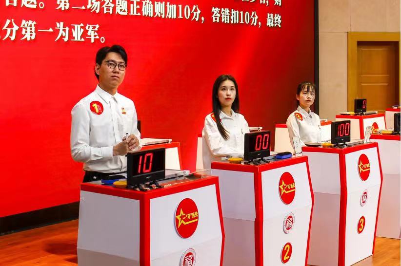 第七届大学生学习马克思主义理论“一‘马’当先”知识竞赛总决赛在旗山校区模拟法庭举行。校党委副书记黄身勇,学生工作部(处)、校团委、教务处、马克思主义学院等单位负责同志,学院党委副书记、参赛选手、指导教师及学生代表出席活动。
