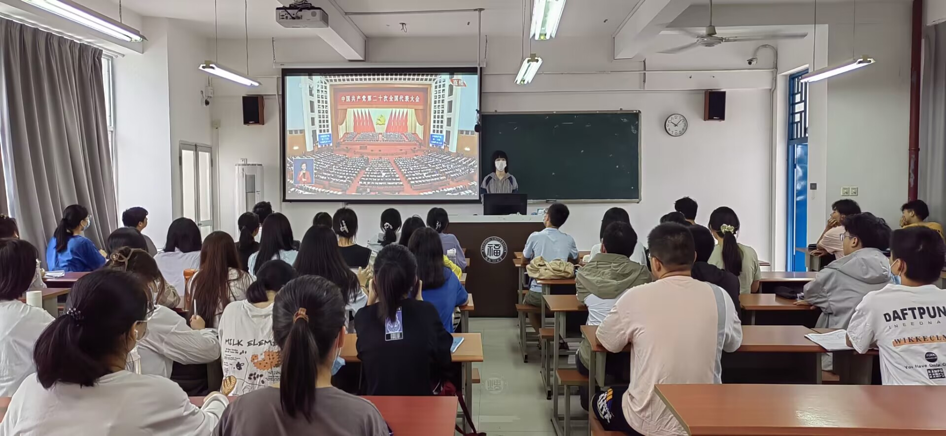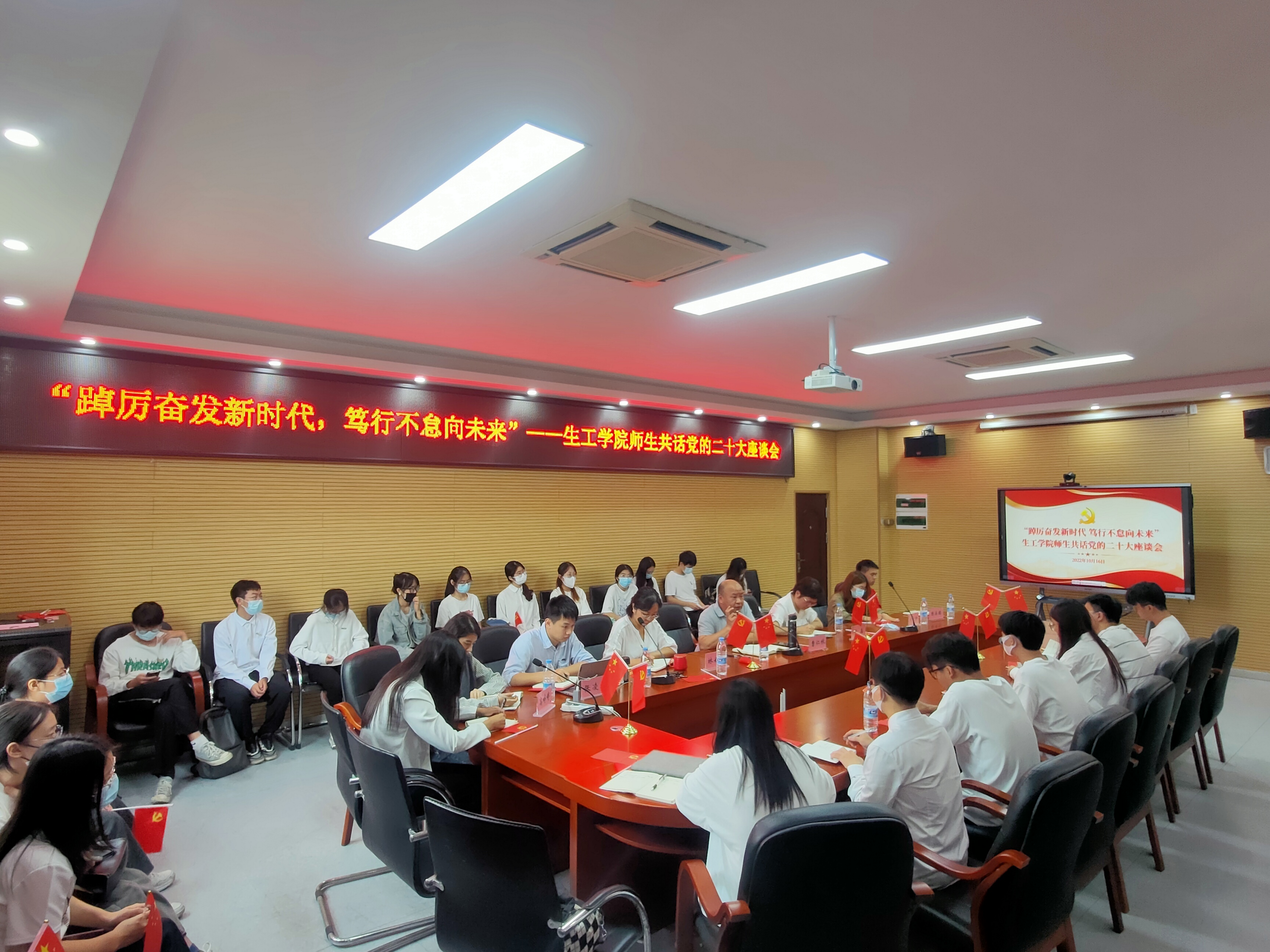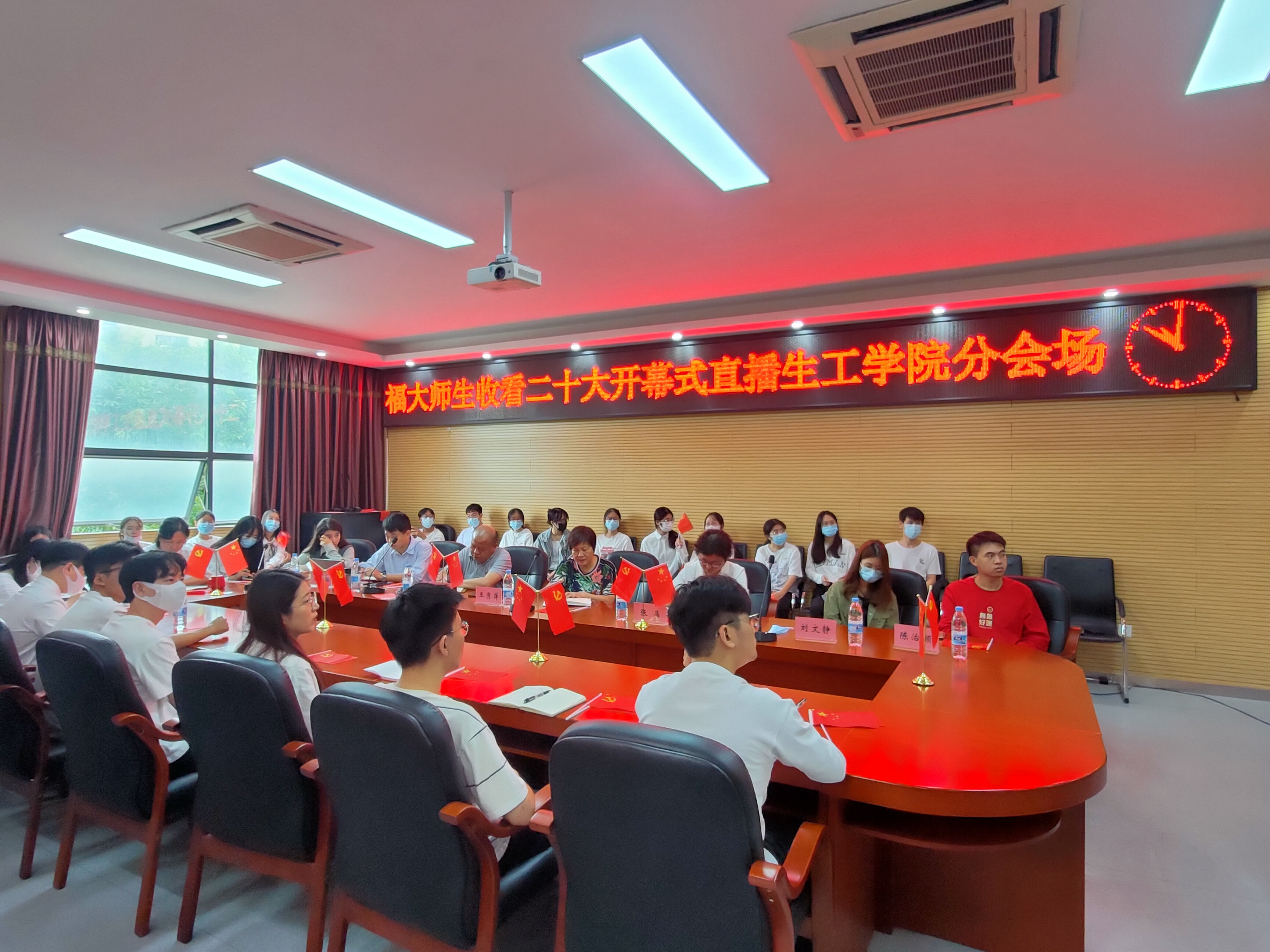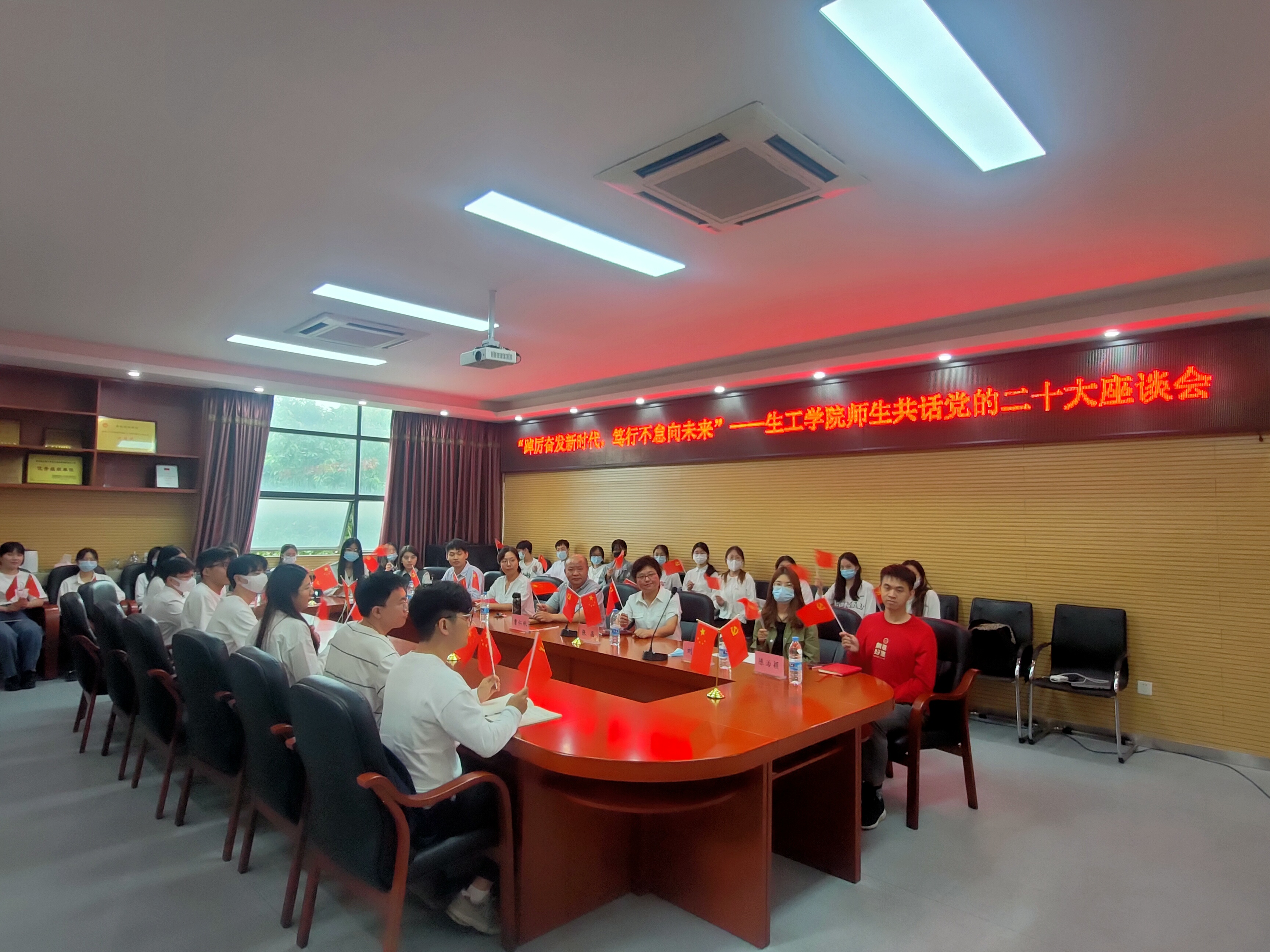 上午10:00,院党委王秀萍书记、曹仁秋副书记、全体思政辅导员和学生代表在嘉锡楼225会议室集中收看大会开幕直播并开展座谈交流。