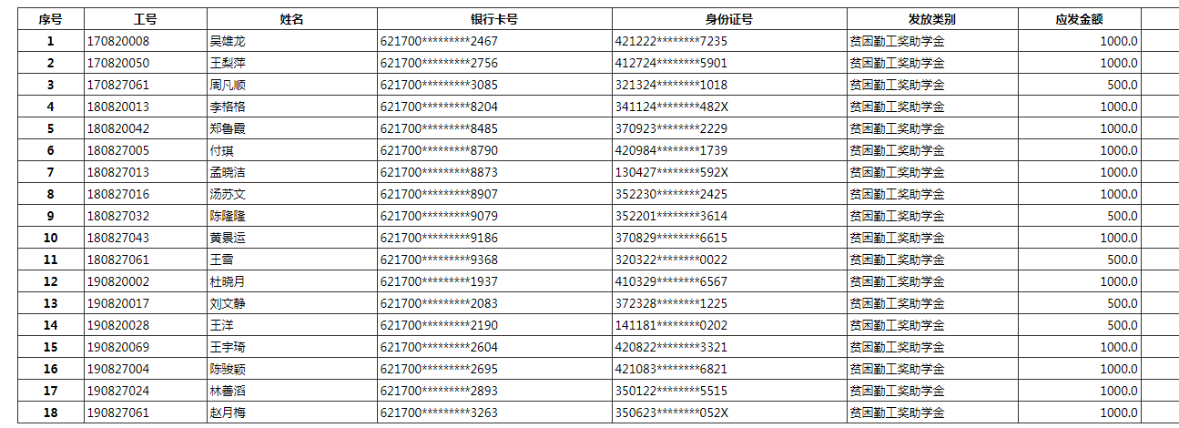 经学生本人申请,班级评议,年级学院评议,现对以下因疫情影响家庭经济困难研究生发放补助,名单如下:
