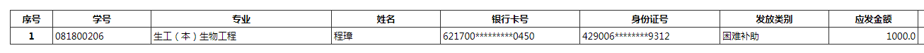 经学生本人申请,班级、学院评议,现对以下同学增补发放临时困难补助金,名单如下: