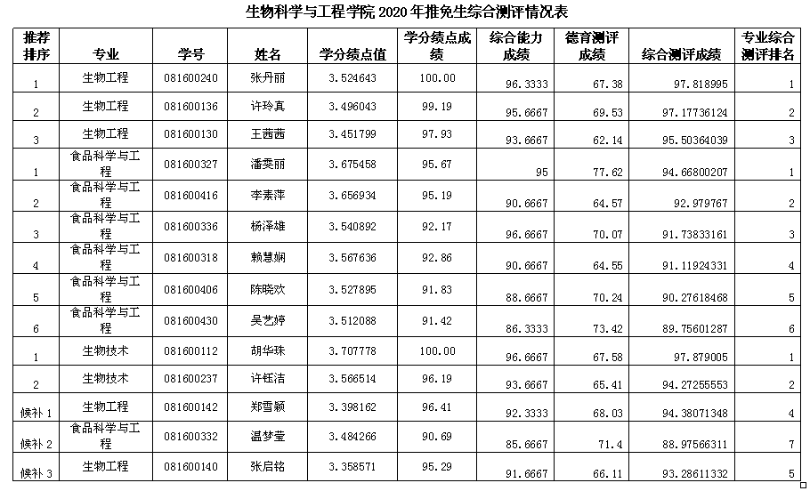 推免名额:生物技术2人;