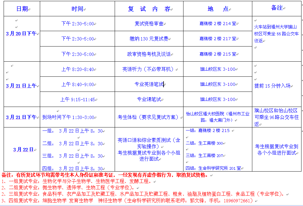 五、复试成绩满分为100分。其中:专业笔试分值占40分,综合素质测试分值占40分(面试、实验技能各占20分);英语测试分值占20分(听力8分、口语4分、专业外语笔试8分),复试成绩小于60分的考生不能录取。
