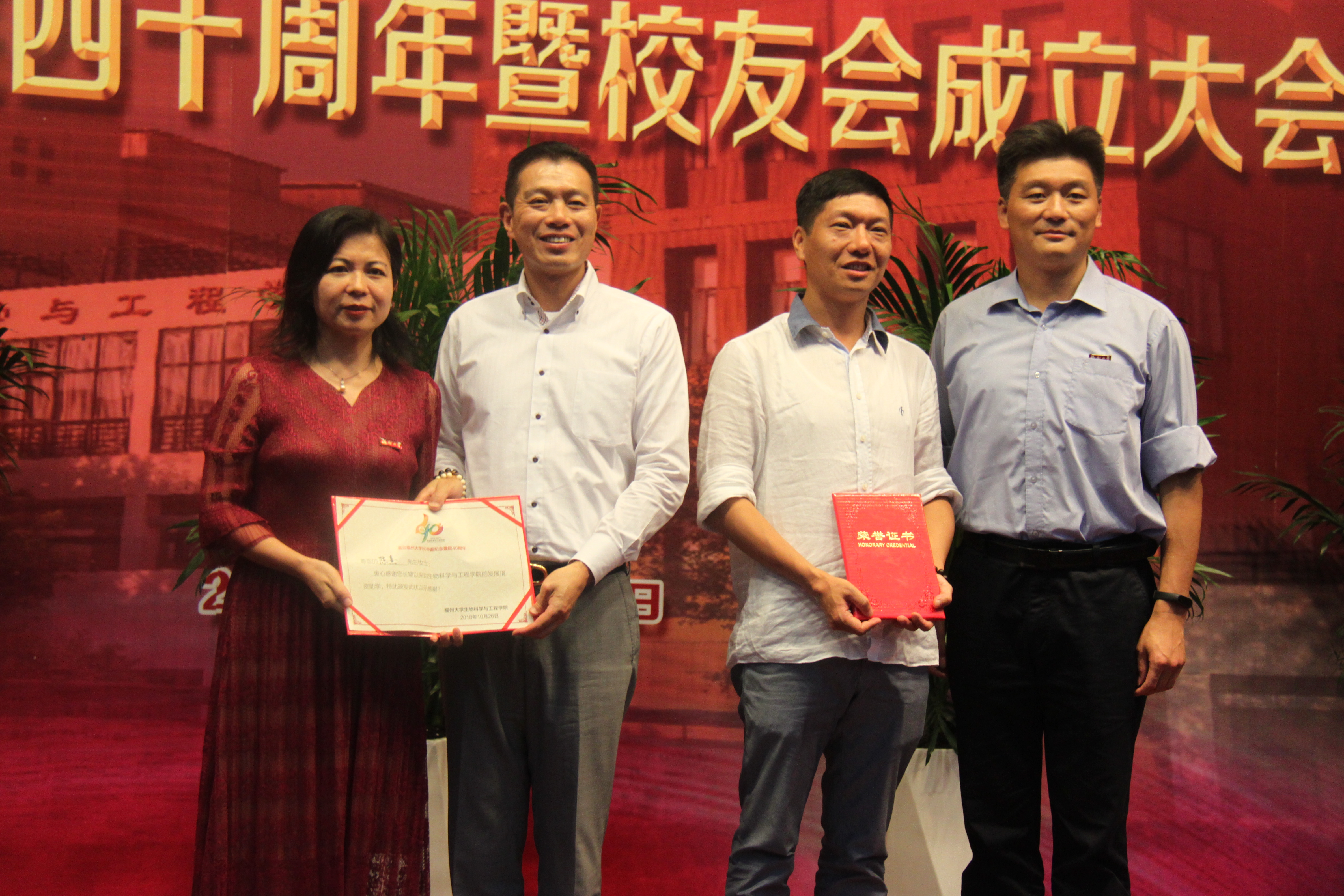 78级校友陈津先生包含深情地回忆了在校求学的峥嵘岁月,作为学院的第一届学生,他感慨万千:那段艰苦奋斗的岁月催人奋进,虽然大家走上了不同的工作岗位,但都在不同的战线上为国家的繁荣发展作出不同的贡献,在大家的心里,都有一个共同的名字——福大人,在这个值得纪念的日子里,回母校看看是每一个福大人的心声。80级校友陈熹先生则一直关心学院的建设,继捐建了学院柏物产学术交流中心之后,又出资支持学校火山地质公园、梅园以及学院“曦苑书吧”的建设,他表示将一如既往地支持学院的发展。在校学生代表陈灵欣同学表示将向历届优秀的学长、学姐学习,发扬福大“三种精神”,传好接力棒,为学院更加灿烂辉煌的明天不懈努力。