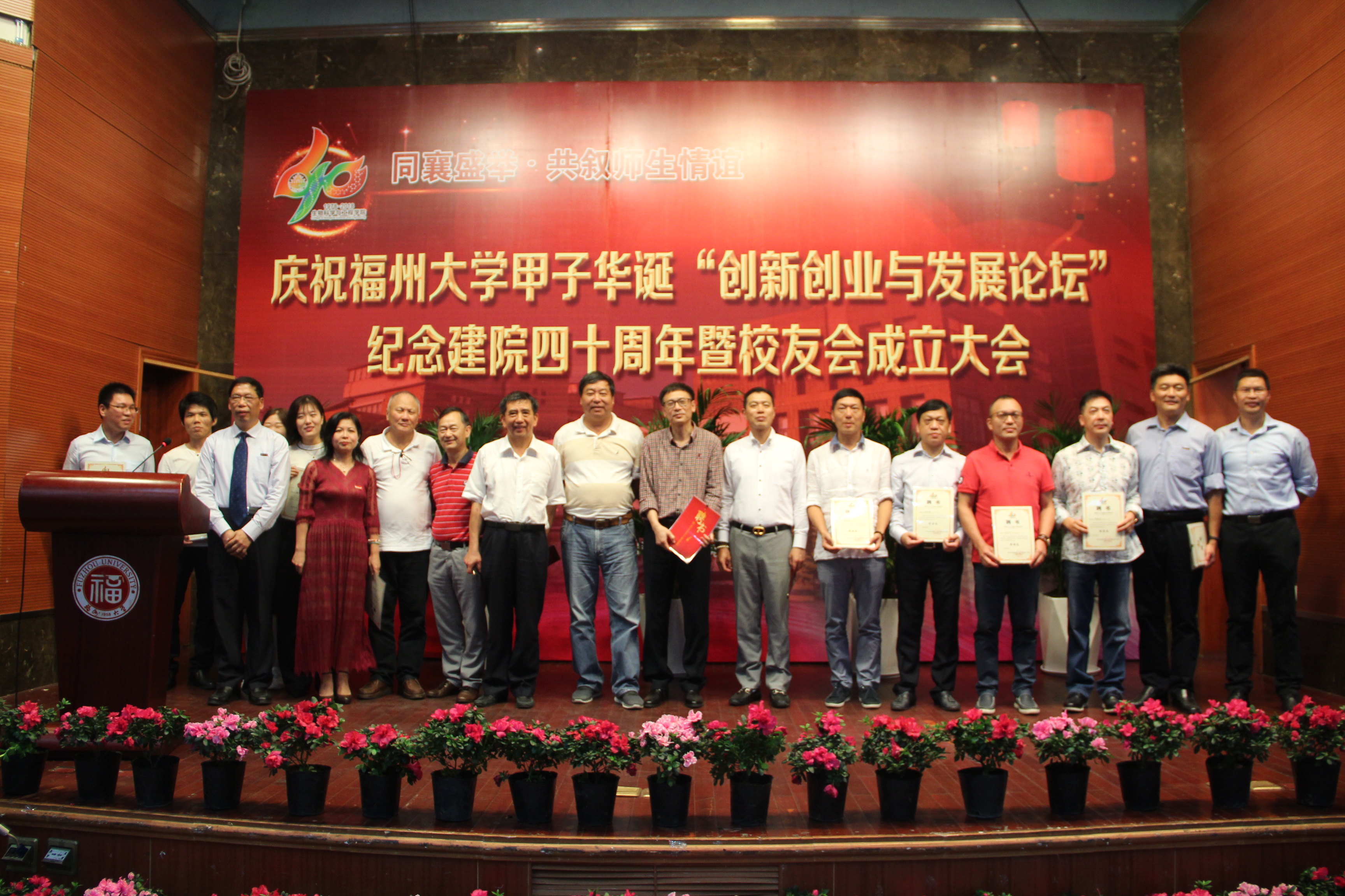 纪念建院40周年暨学院校友会成立大会在嘉锡楼学术报告厅隆重召开。学院领导班子以及学院自1978年建院以来的200余名校友代表出席盛会,王健副校长以及学校统战部部长、校友会会长程玉敏女士应邀参加了大会。