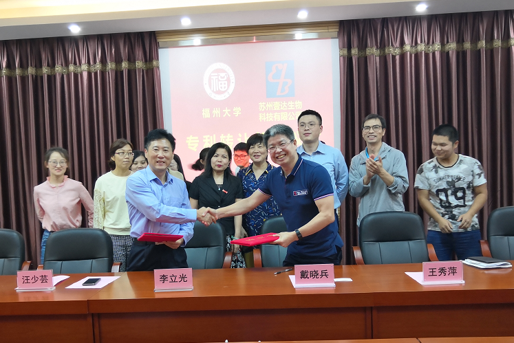 与苏州壹达生物科技有限公司专利转让签约仪式在嘉锡楼225会议室举行。学院党委王秀萍书记主持了签约仪式。苏州壹达生物科技有限公司董事长戴晓兵博士、校科技开发部李立光处长、爱爱视频