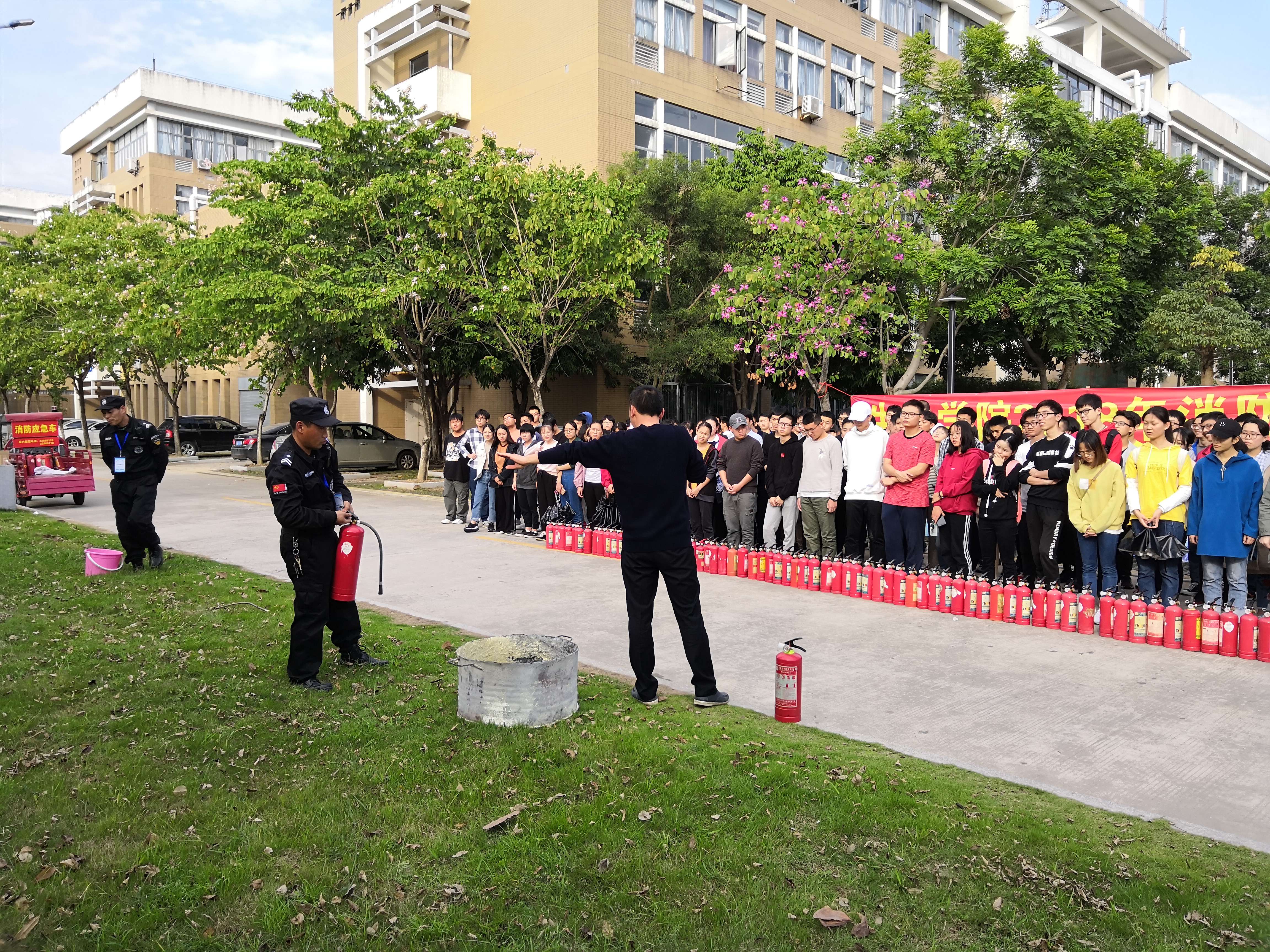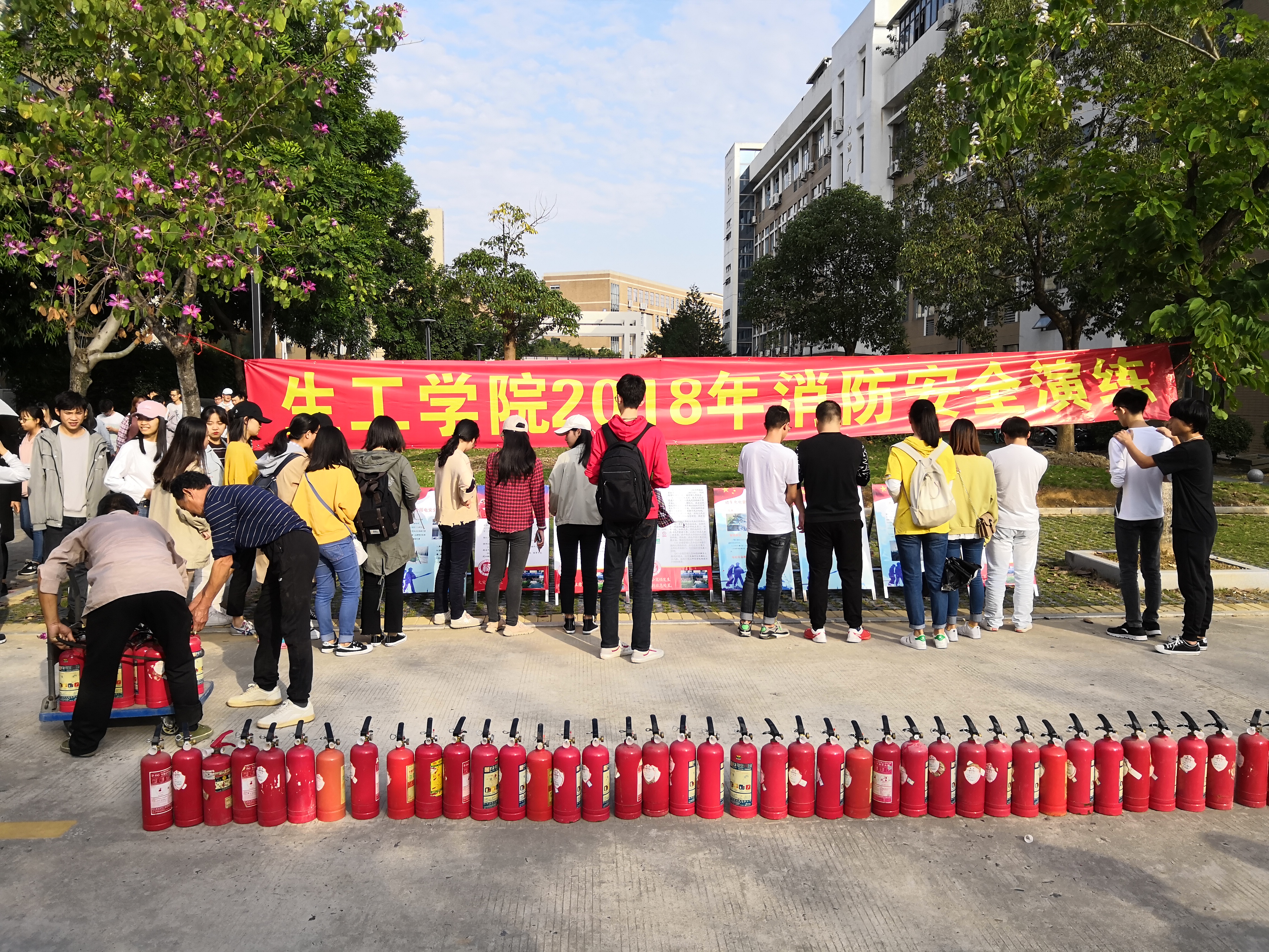 开展了2018年消防安全演练。院领导、安全管理员、各实验室负责人及部分学生代表共200多人参加了消防安全知识的学习和实践操作。本次演练活动邀请了保卫部张德峰老师到场讲解和模拟示范。