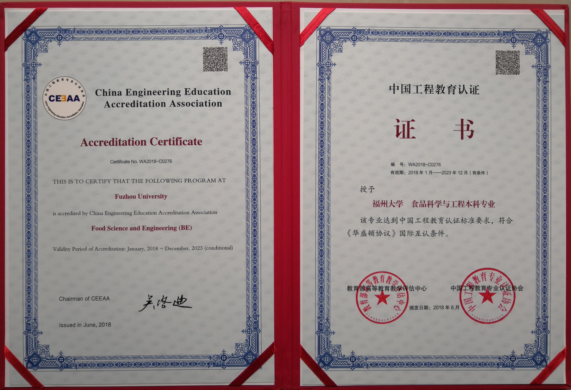 食品科学与工程专业达到中国工程教育认证标准要求,符合《华盛顿协议》国际互认条件,已成功进入工程教育专业全球第一方阵,助力我校人才培养质量快速提升,实现与国际接轨。