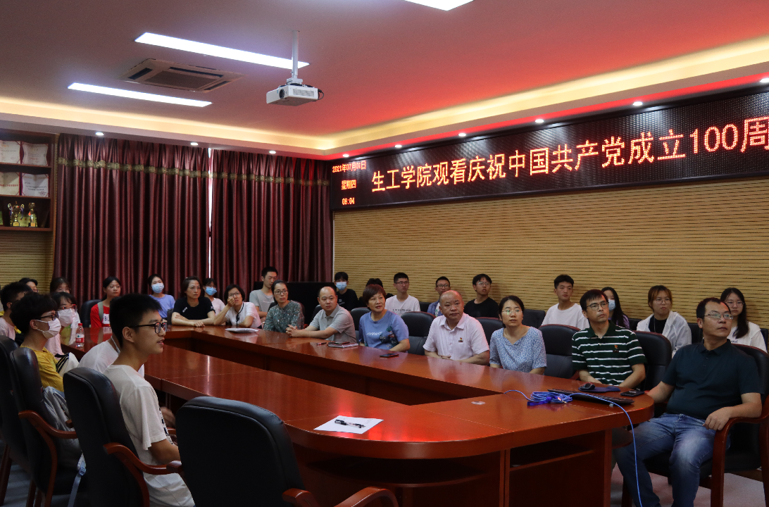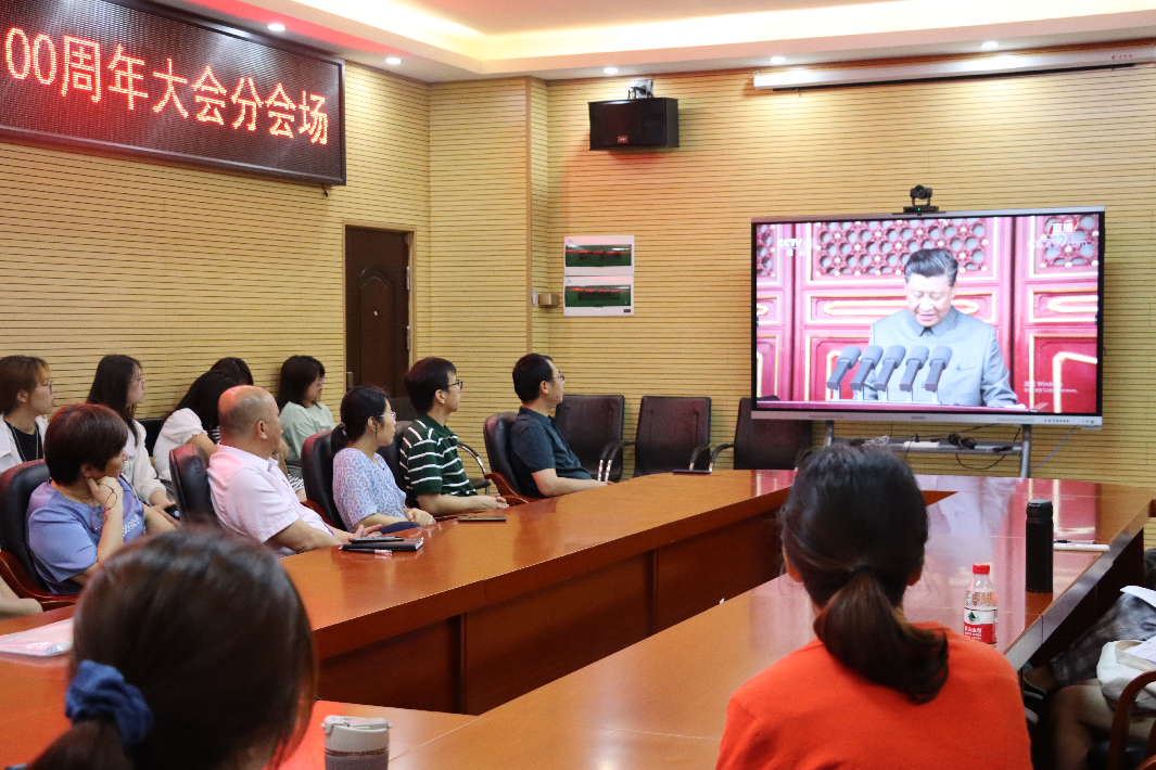 在嘉锡楼225会议室和柏物产学术报告厅组织集中收看庆祝中国共产党成立100周年大会现场直播,院党委书记王秀萍、副书记曹仁秋等部分师生员工参加了此次集中收看活动。各党支部、团支部等也通过电视直播和网络直播同步观看。