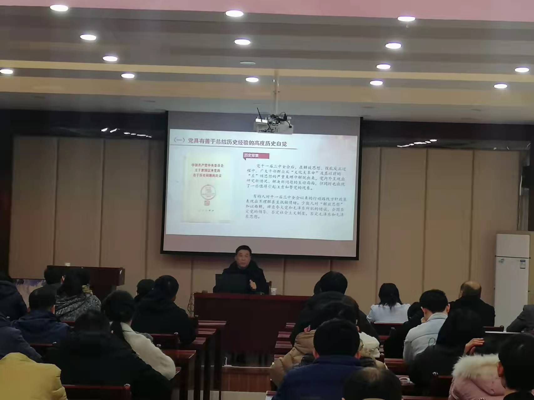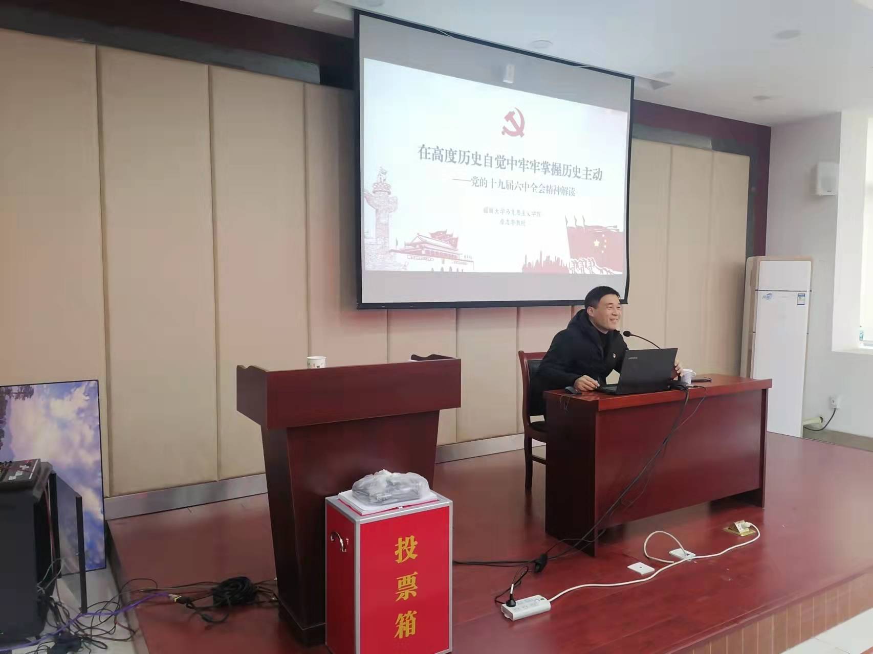 2021年12月30日下午,我们邀请学校马克思主义学院院长詹志华教授来学院做题为《在高度历史自觉中牢牢掌握历史主动》的党的十九届六中全会精神解读的宣讲报告,全院教职员工参加了学习。