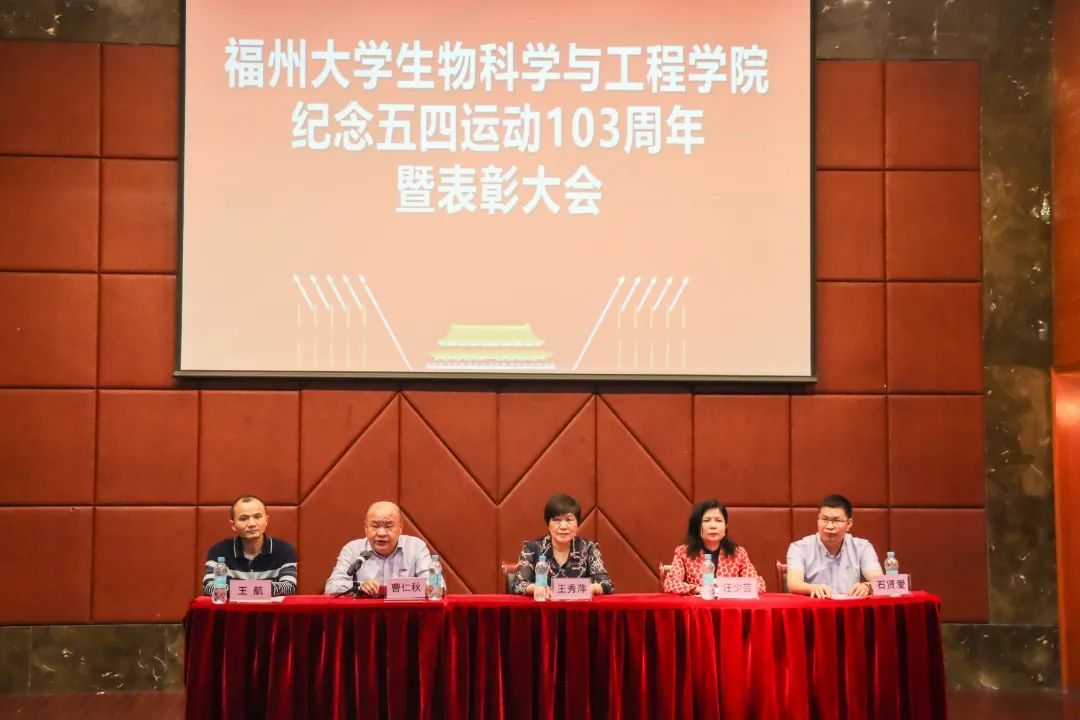在嘉锡厅隆重举行纪念“五四”运动103周年暨表彰大会。院党委王秀萍书记、汪少芸执行院长、院党委曹仁秋副书记、石贤爱副院长、王航副院长及爱爱视频