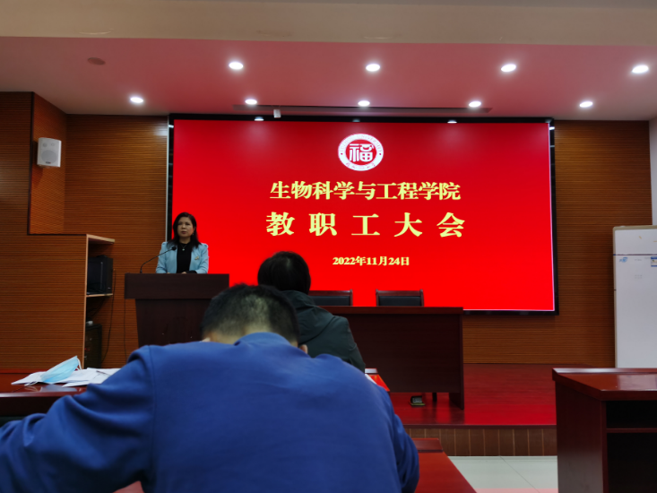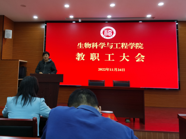 11月24日下午,全院教职工大会暨学院本科教育教学审核预评估动员大会在柏物产报告厅举行。会议由院党委王秀萍书记主持,学院全体教职工参会。