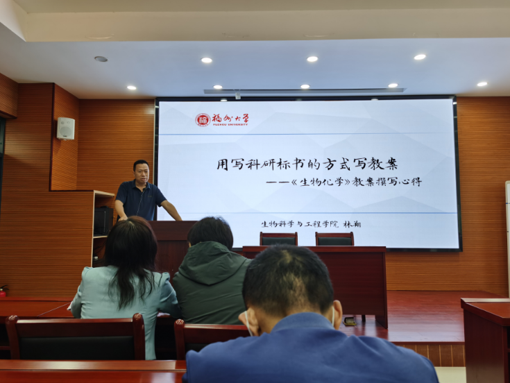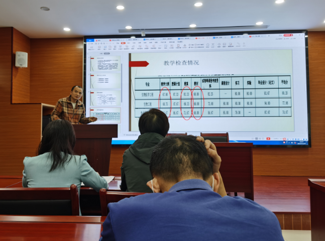 课程教学资料进行专项检查的结果,同时,对教学大纲、授课计划、教案、教材、试卷等课程考核资料、毕业设计(论文)、实习、实验、课程设计等9类教学资料在检查中存在的问题进行了逐项分析,提出了整改要求,并就学院迎接本科教育教学审核评估预评估工作进行了部署和安排。随后,生物医学工程系林翔老师向大家分享了教案撰写心得。